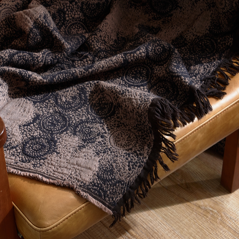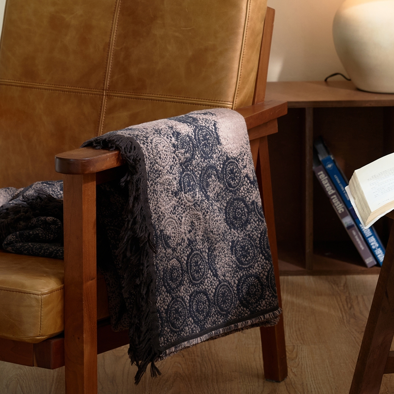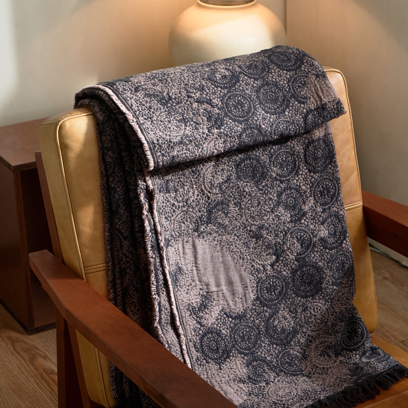 (总)子和家居 2024新款全棉复古强缩色织毛感棉毯