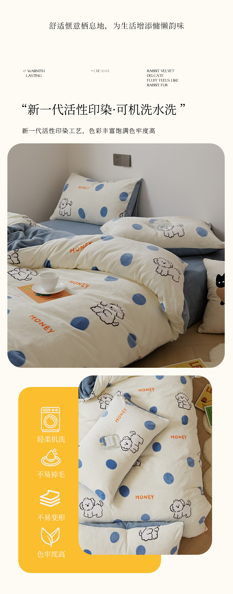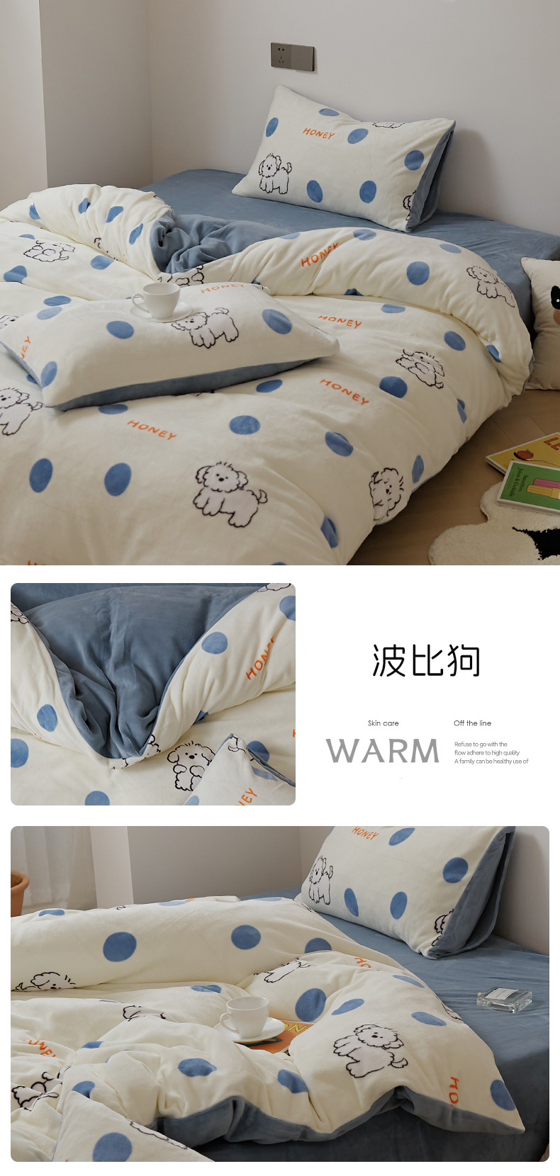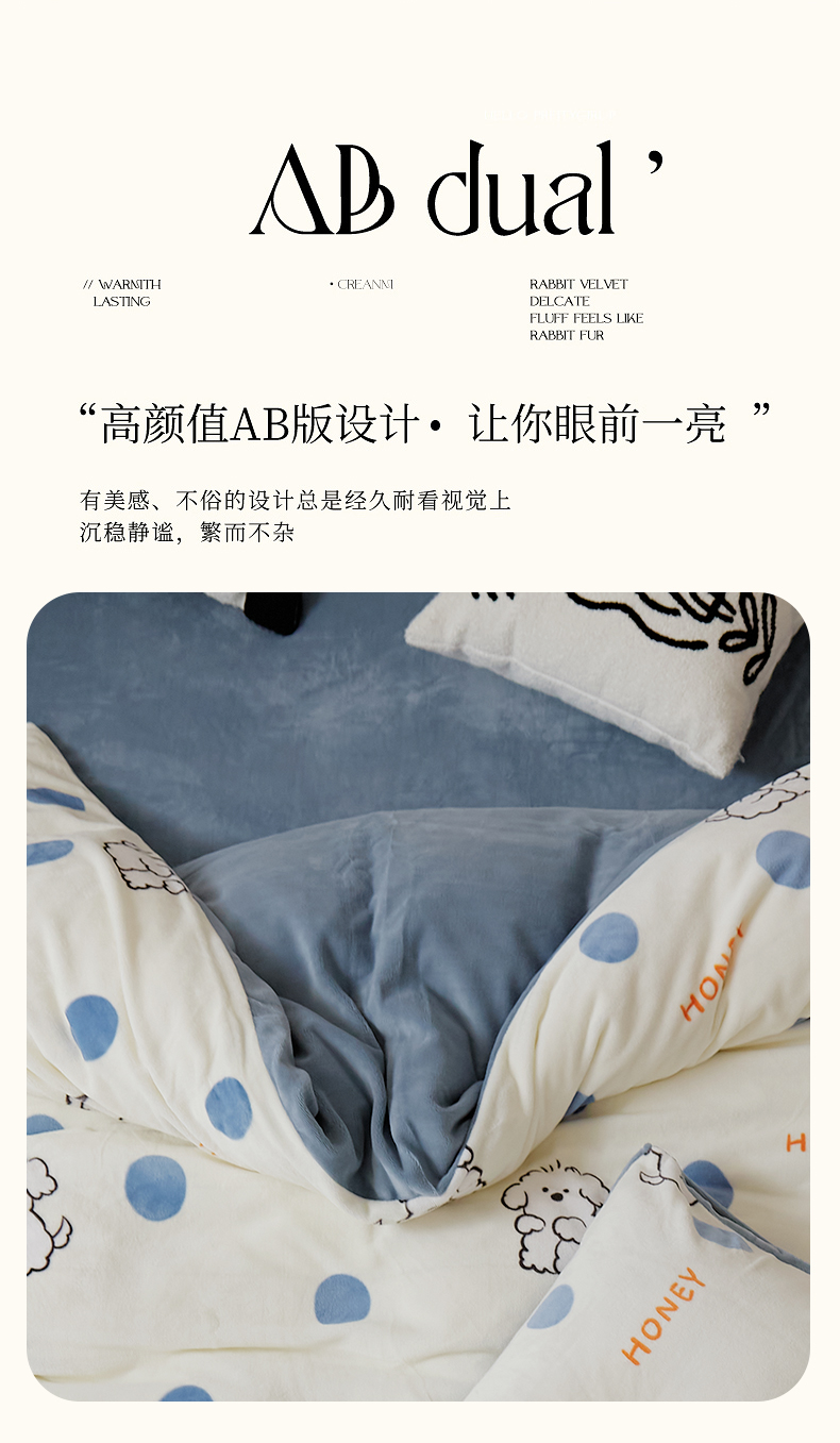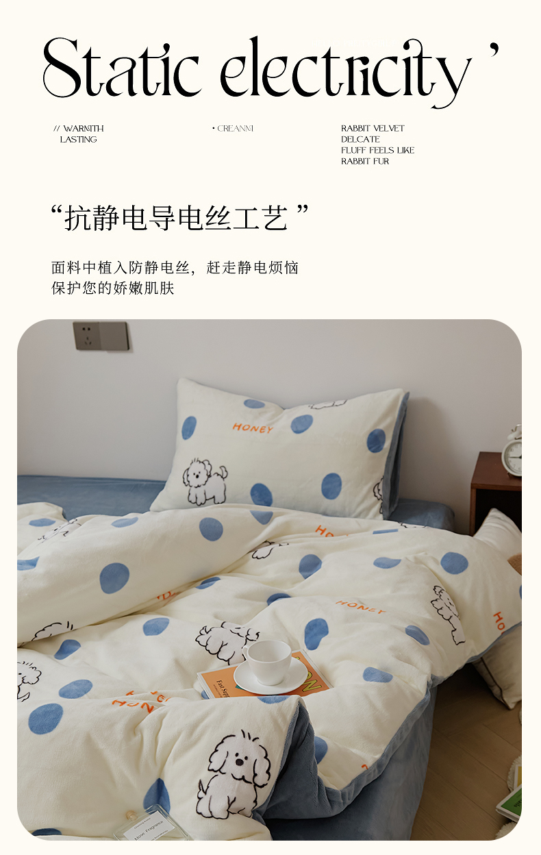 当前位置: 91家纺网 > 商品网购 > 床品套件 > 四件套 > 牛奶绒四件套 > 时光里 2024新款230克牛奶绒印花四件套 波比狗