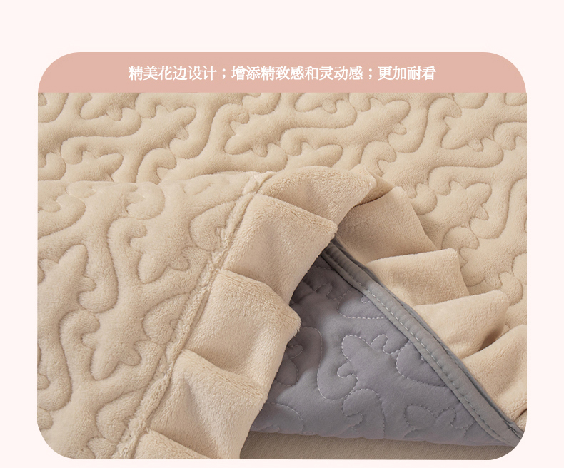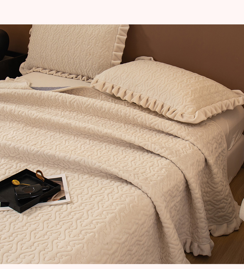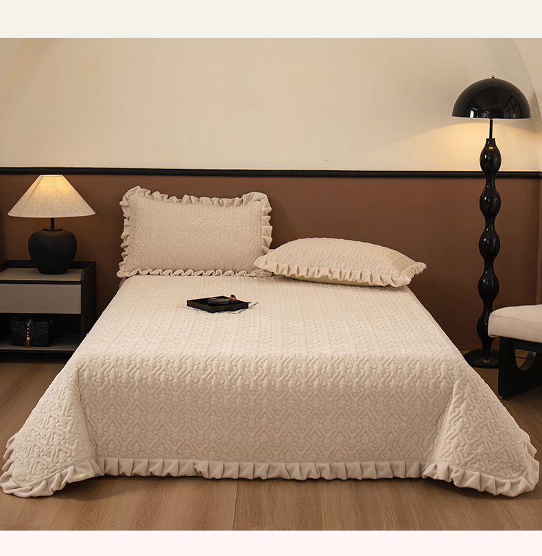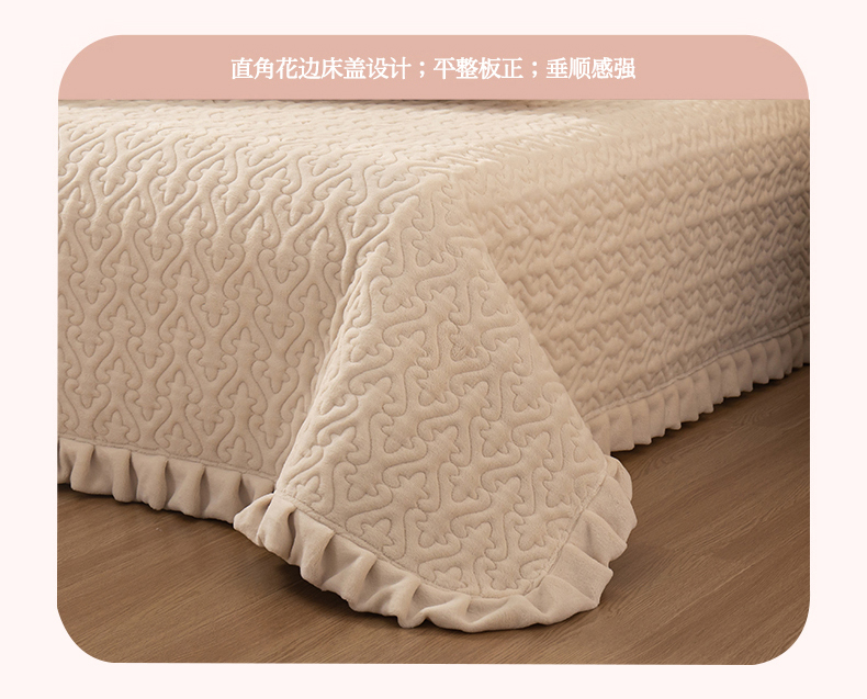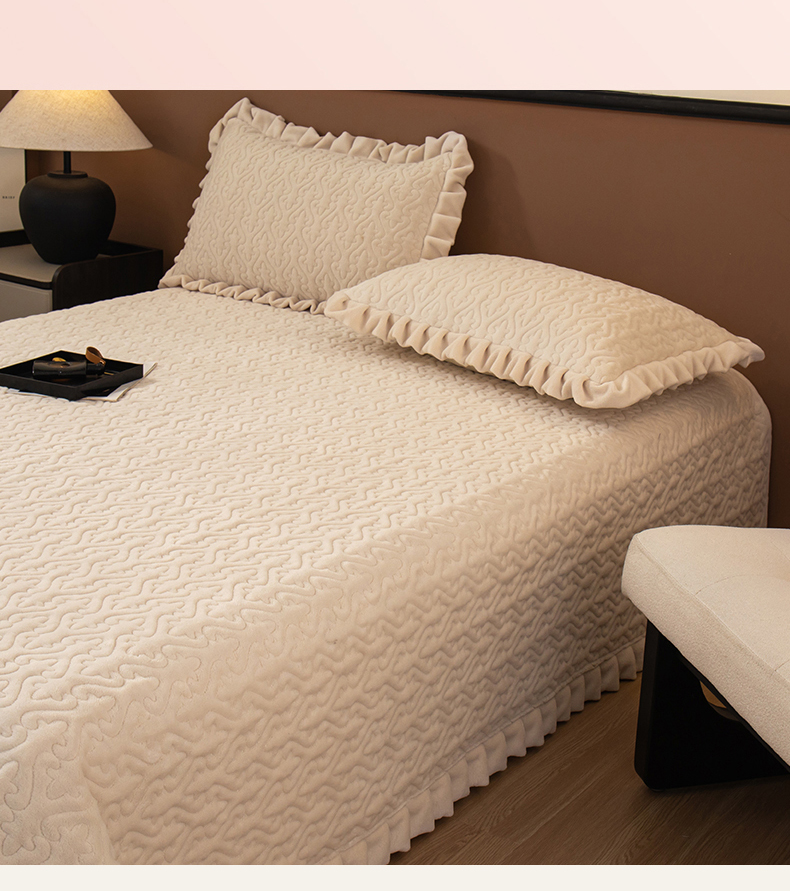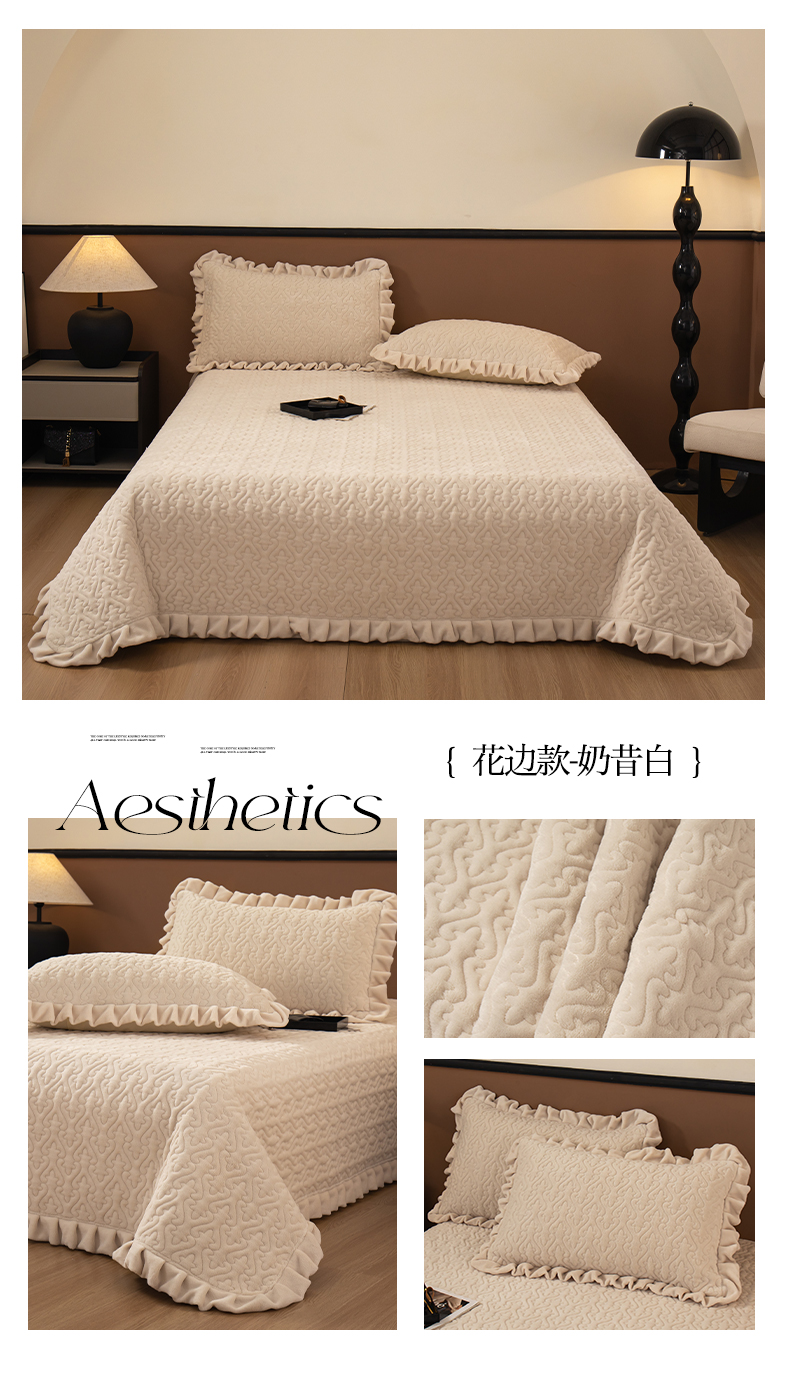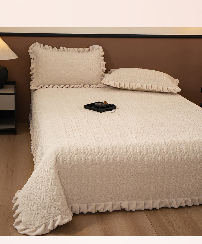 2025新款230克牛奶绒加厚床盖 花边款-奶昔白