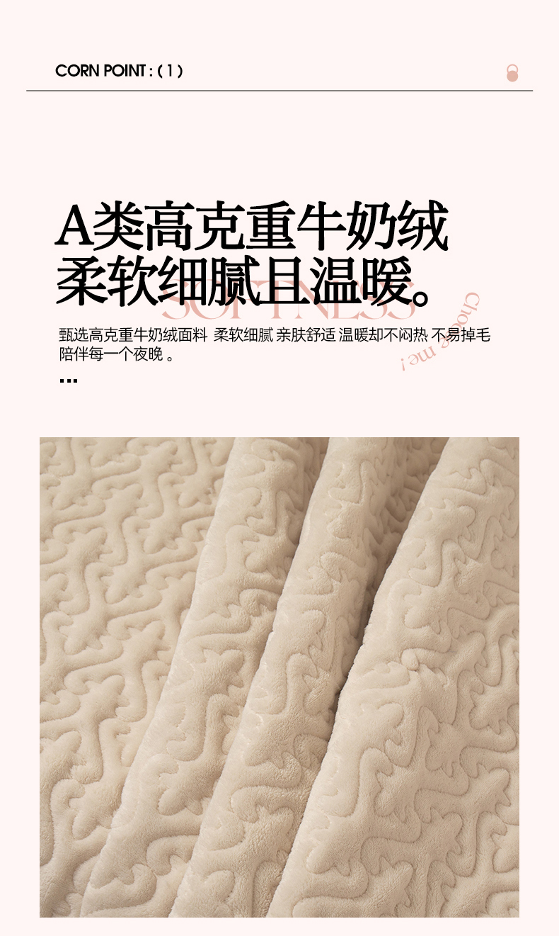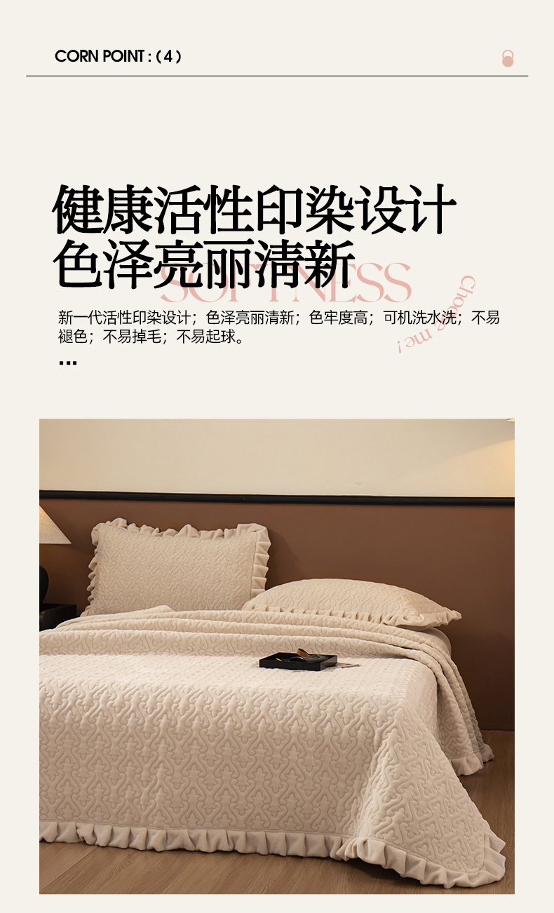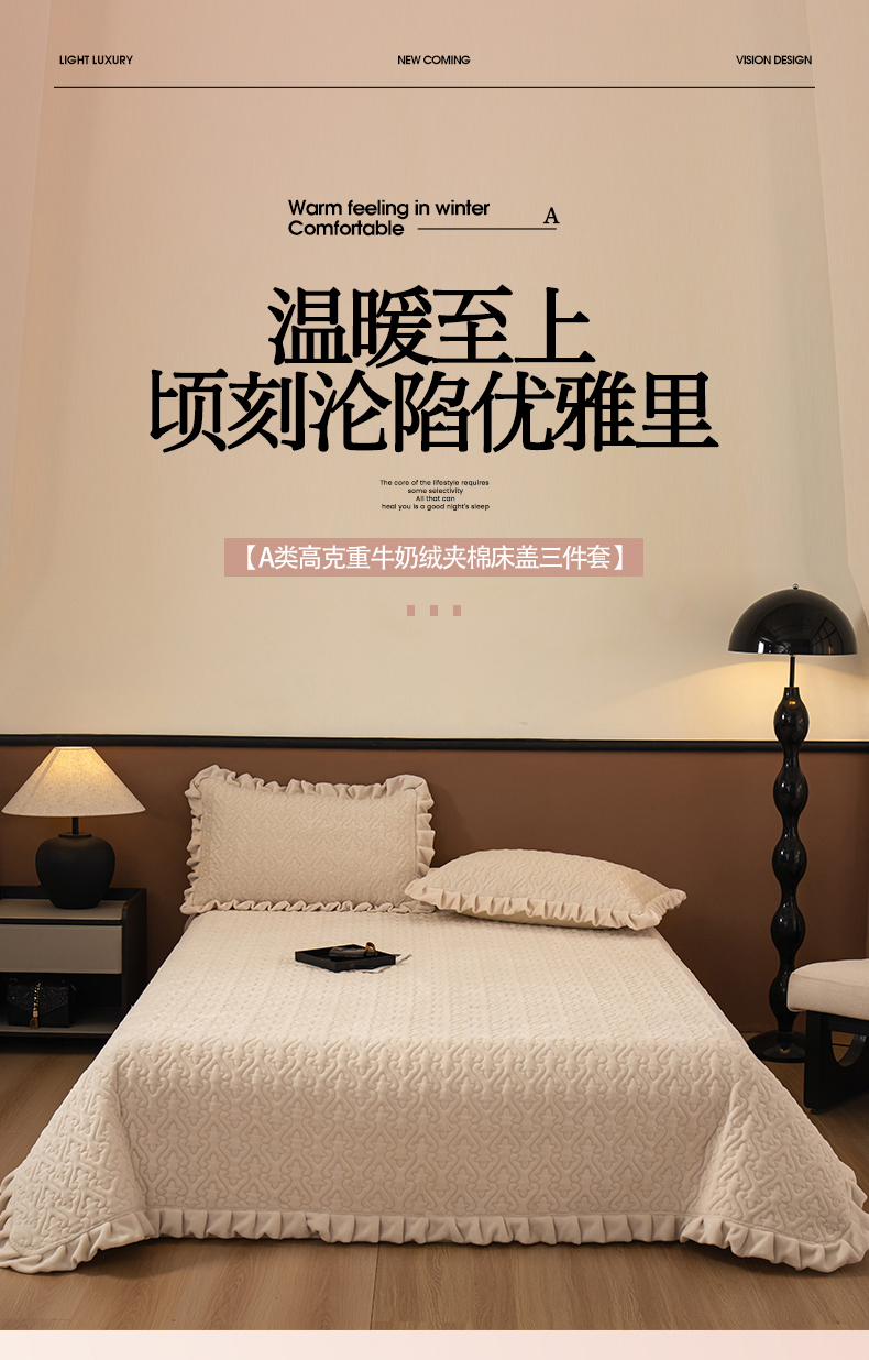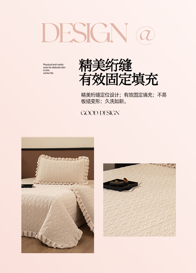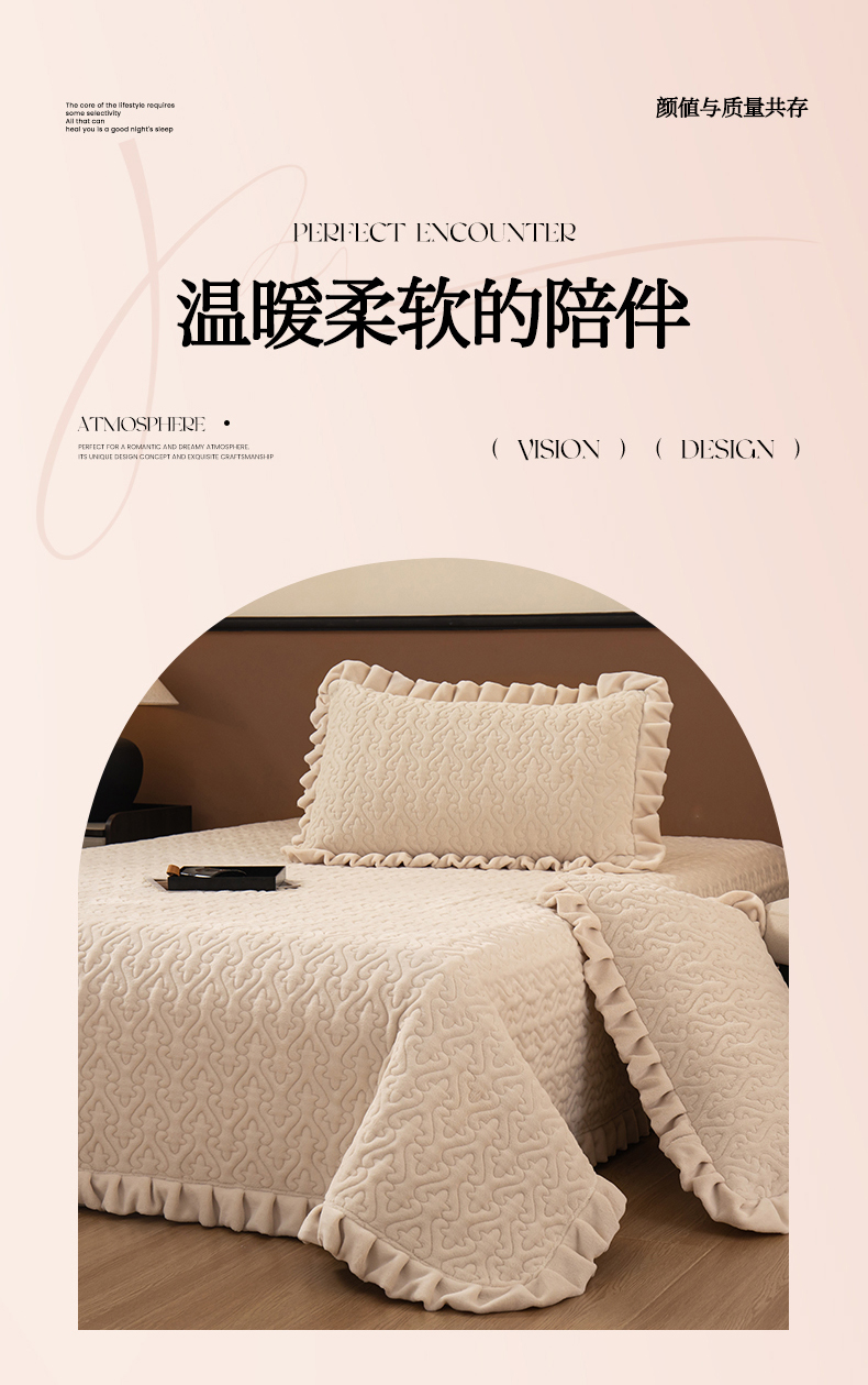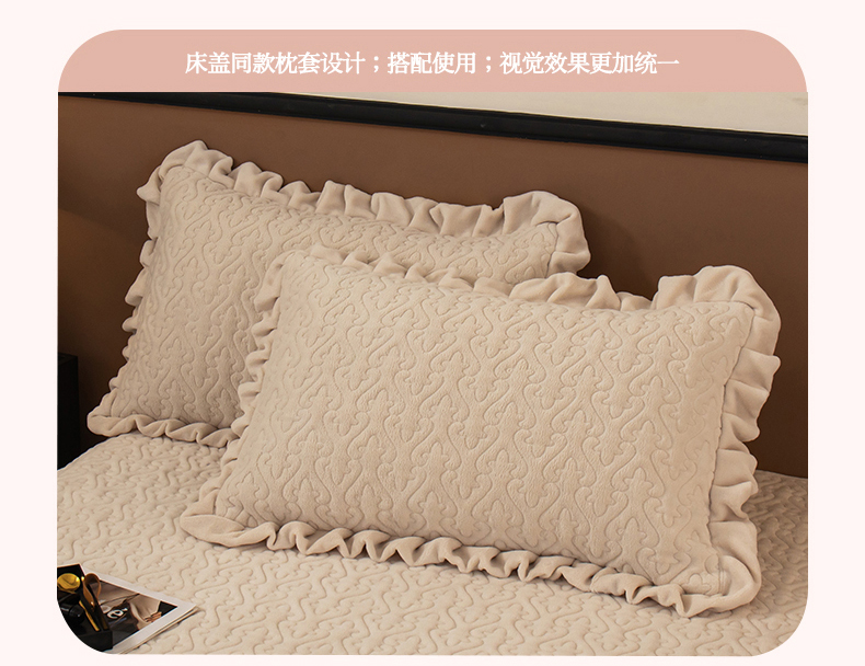 2025新款230克牛奶绒加厚床盖 花边款-奶昔白