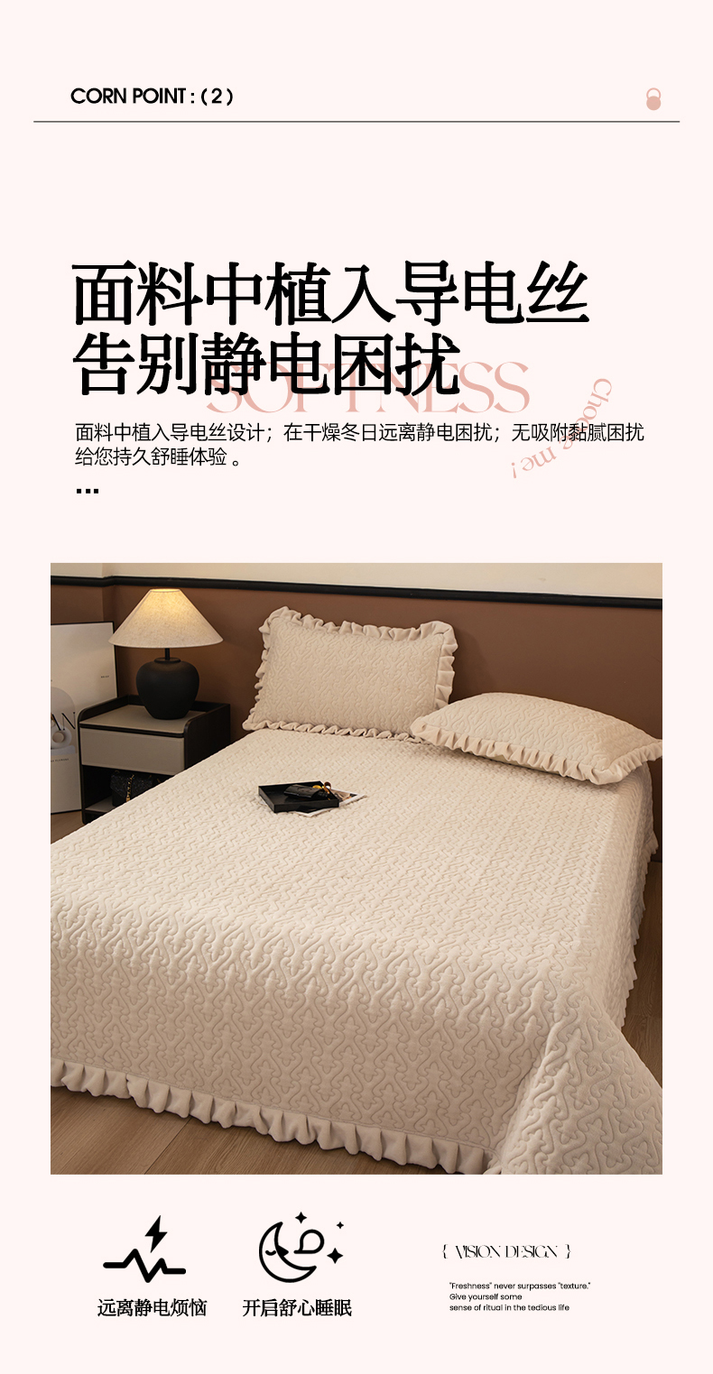 商品名称:2025新款230克牛奶绒加厚床盖 花边款-奶昔白