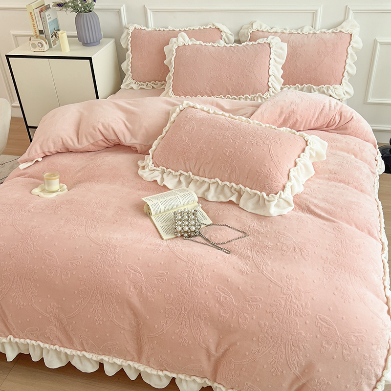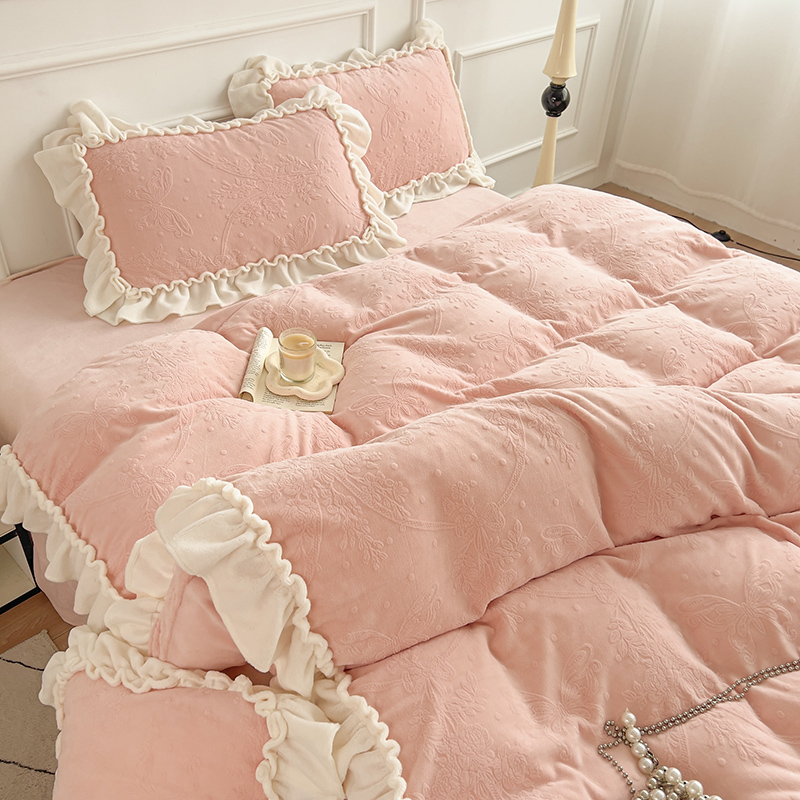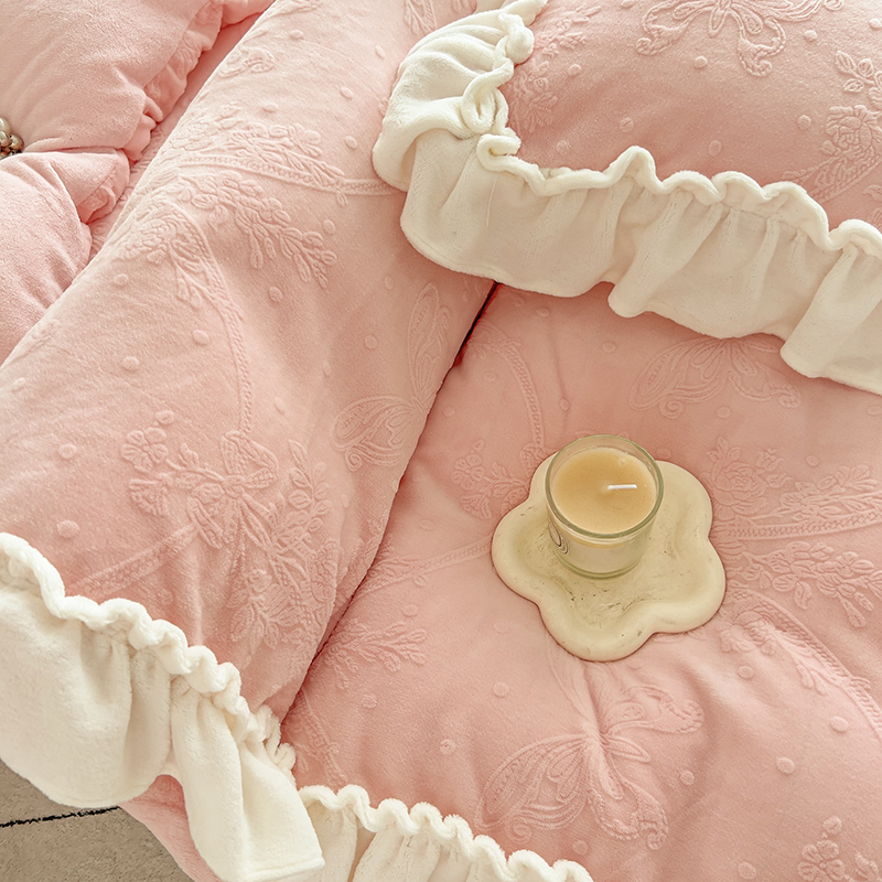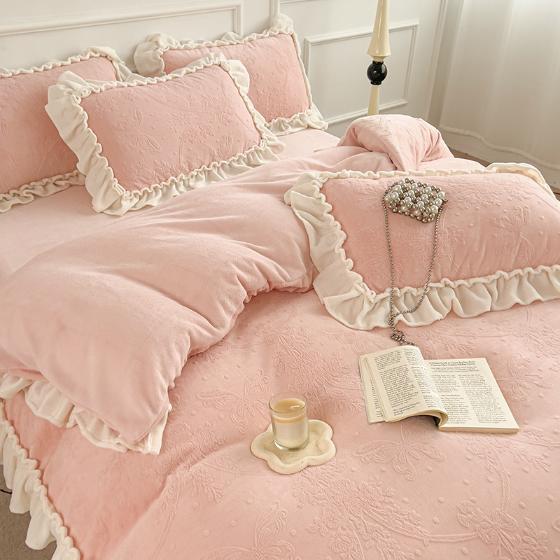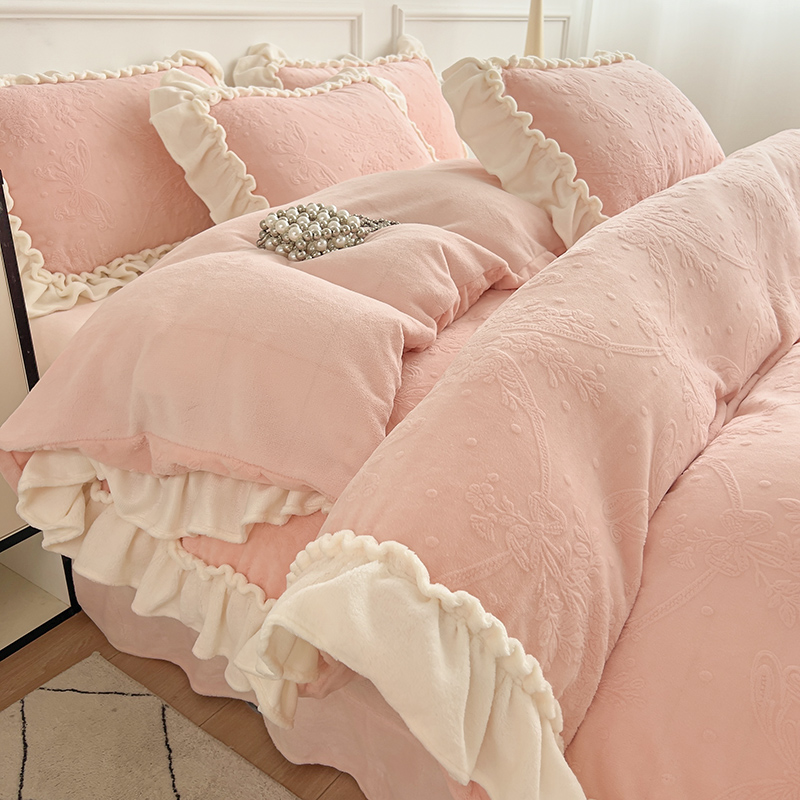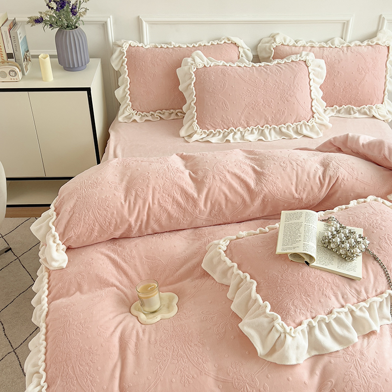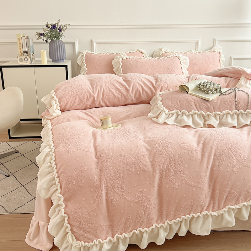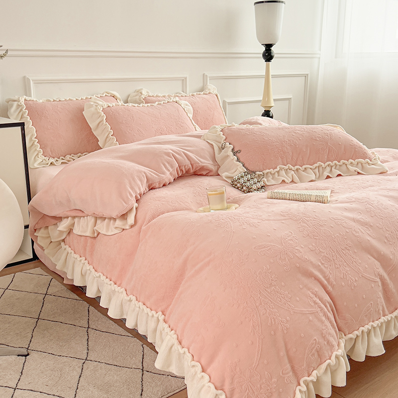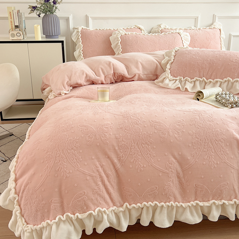 小主驾到 2024新款雕花绒牛奶绒法式轻奢公主风四件套 梦蝶庄园
