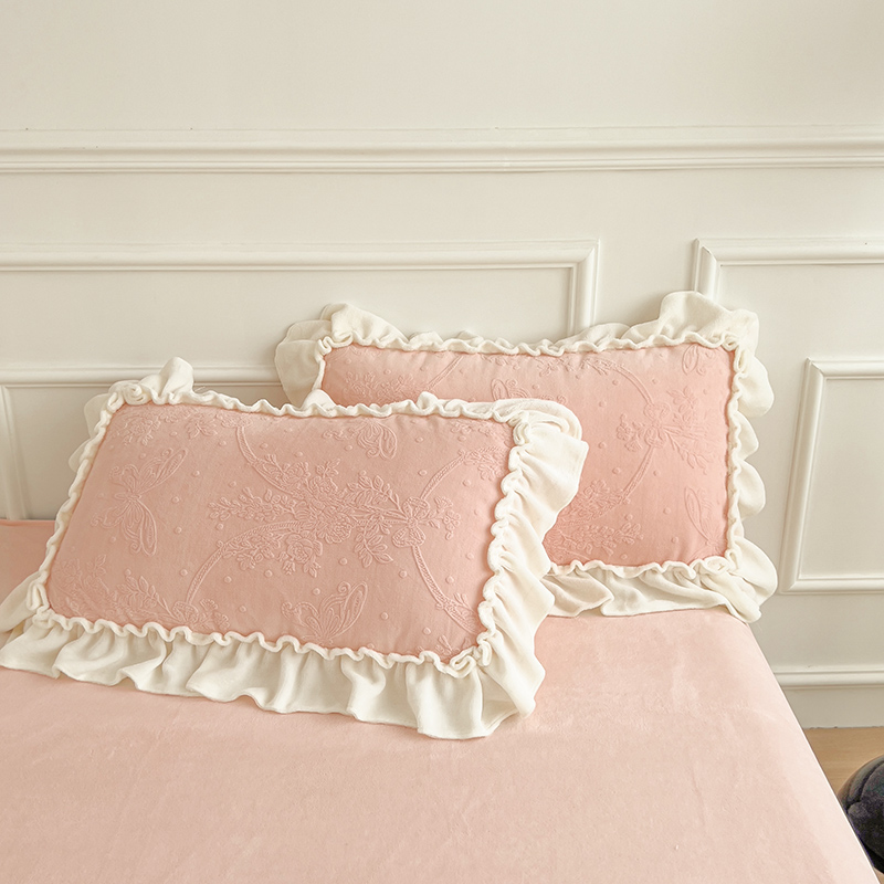 (总)小主驾到 2025新款高克重雕花牛奶绒花边款床单床盖款四件套,洛薇 粉,洛薇 灰紫,洛薇 蓝,洛薇 米白