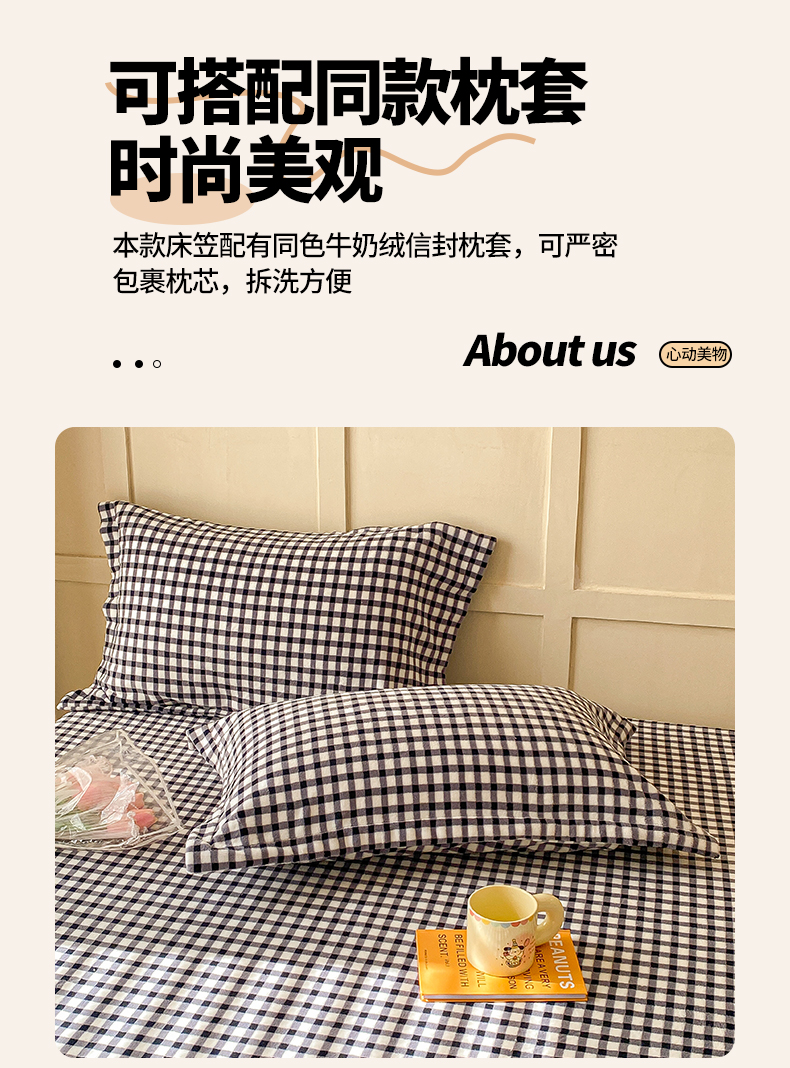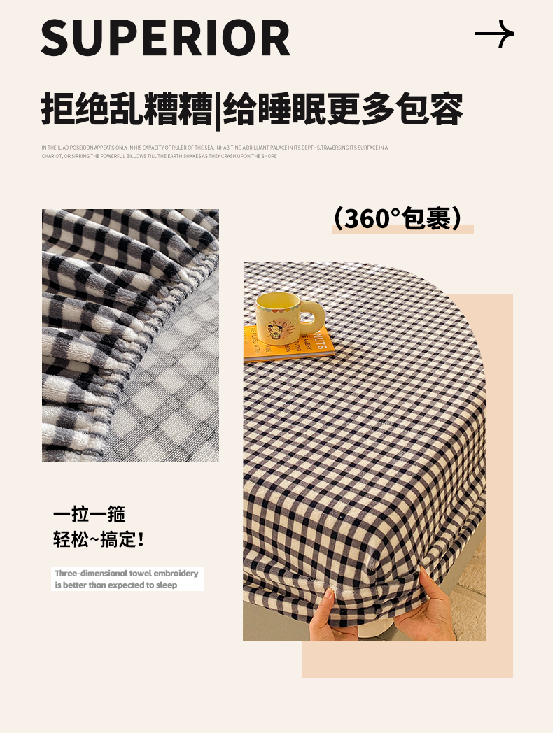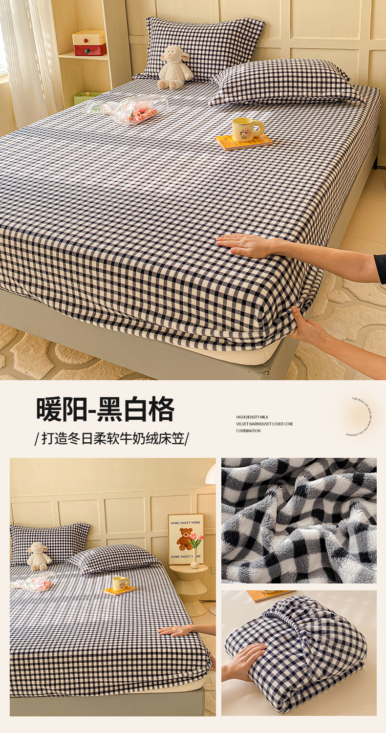 恬澳家纺 2025 200g牛奶绒床笠外贸跨境电商亚马逊速卖通床笠三件套欧美尺寸多多跨境平台TEMU SHEIN 暖阳-黑白格