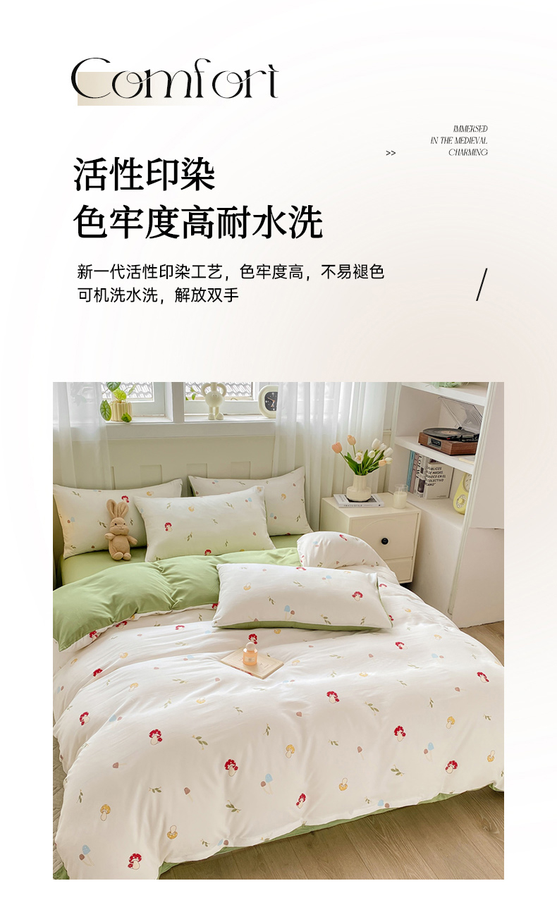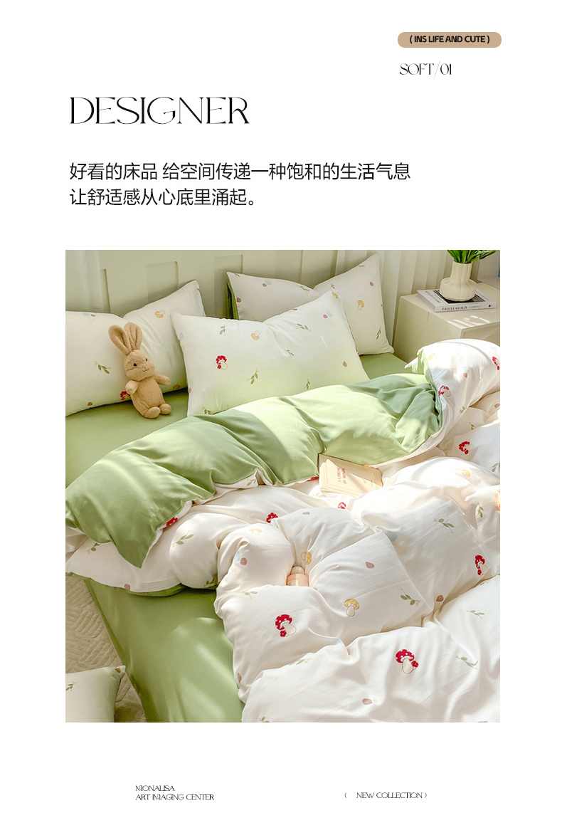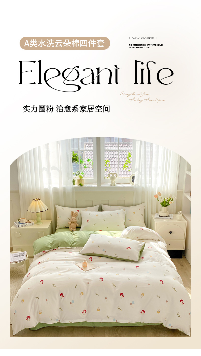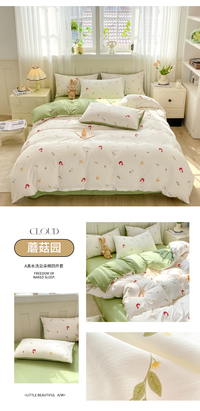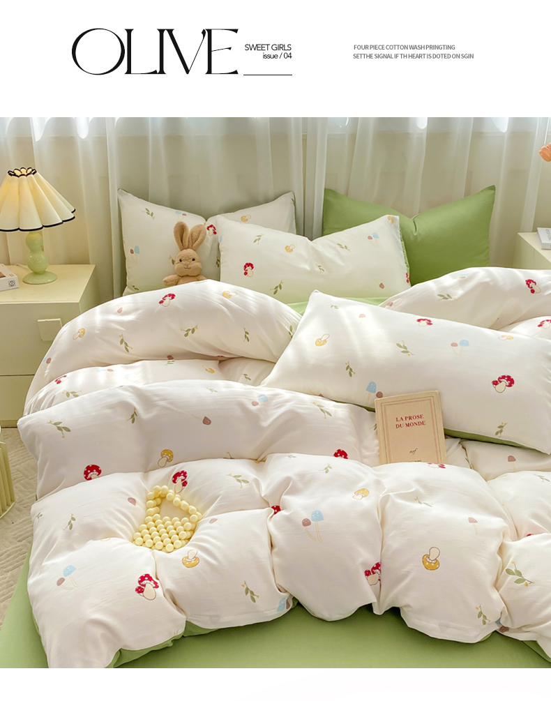 当前位置: 91家纺网 > 商品网购 > 床品套件 > 四件套 > 其它四件套 > 雅阁尔 2024新款直播热款水洗云朵棉四件套小碎花被套床笠三件套 蘑菇园