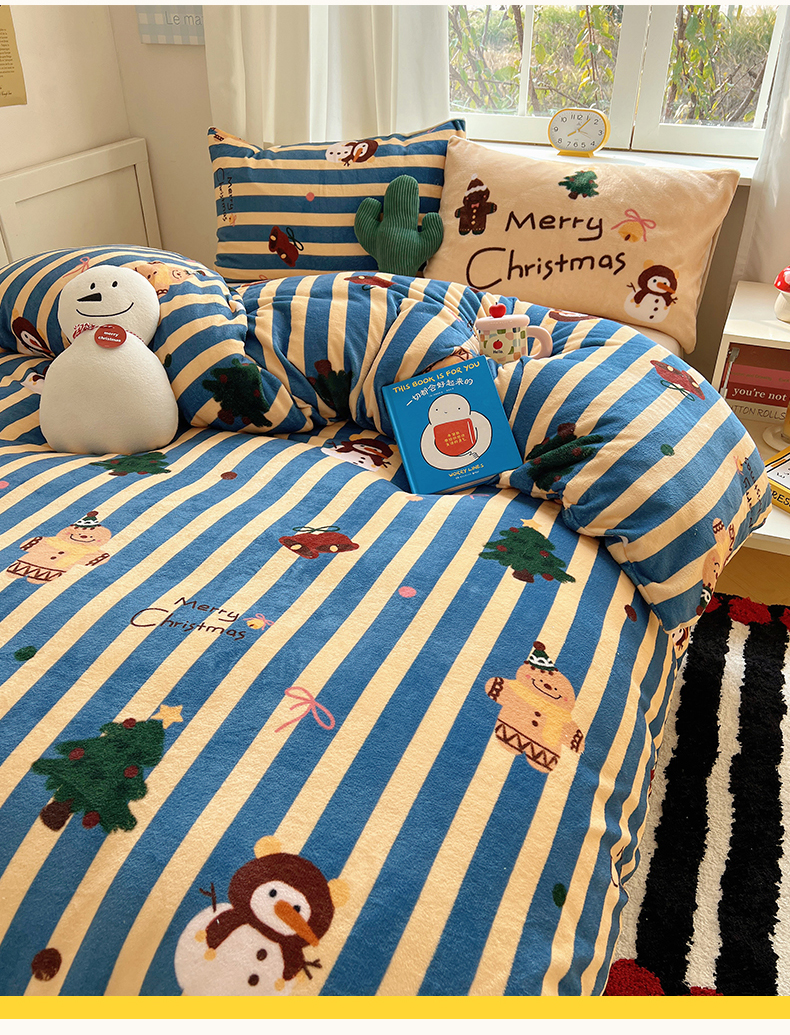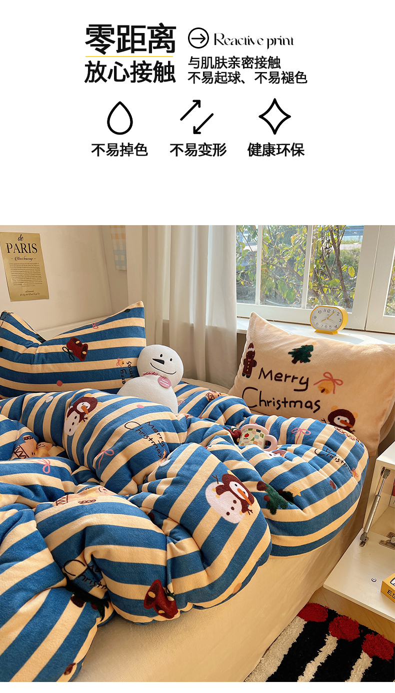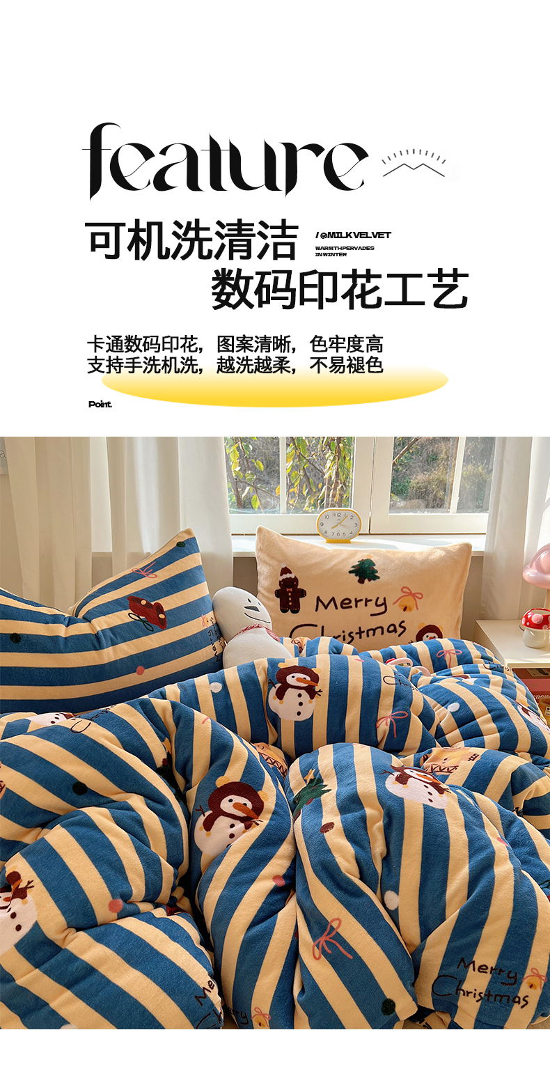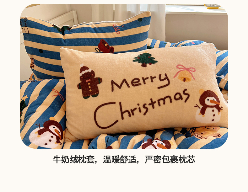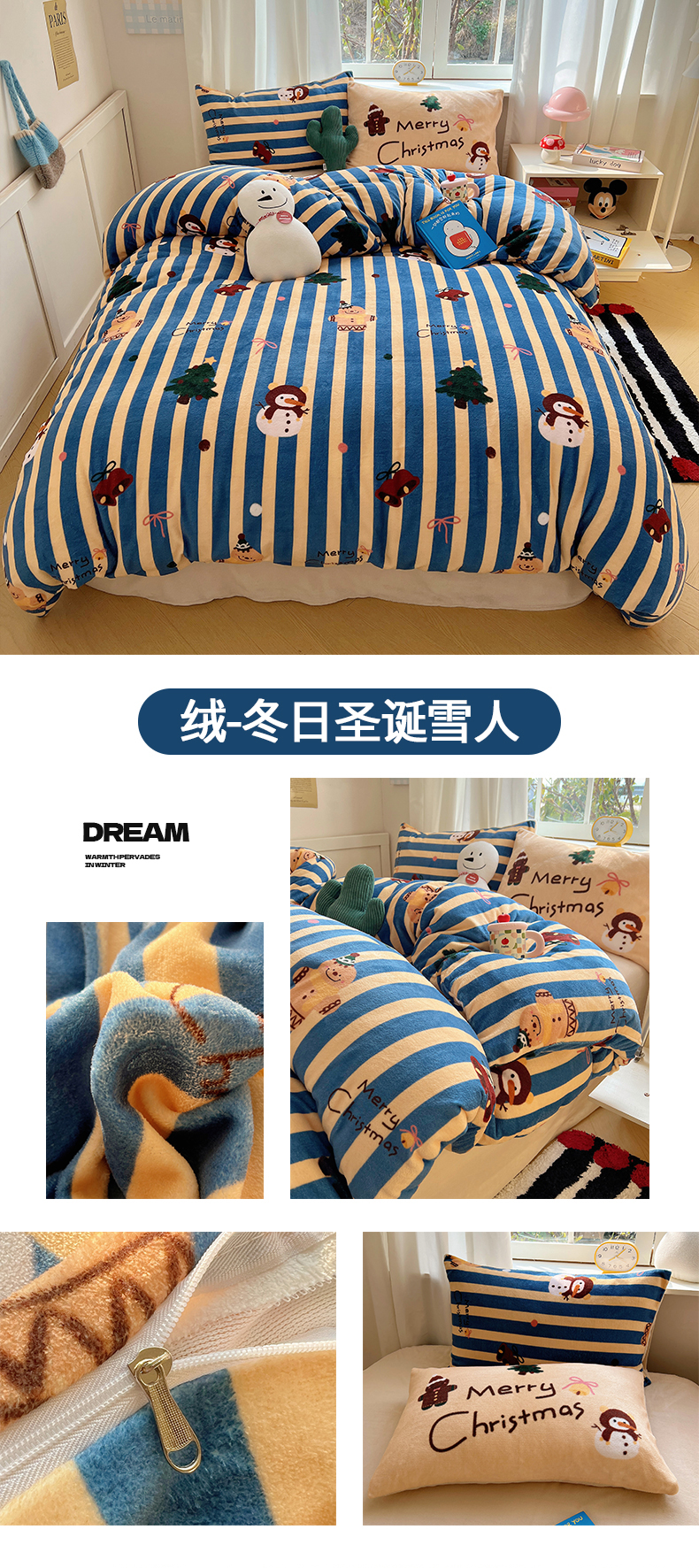 2025新款A类数码印花圣诞新年限定款猫咪小熊加厚牛奶绒系列四件套 绒-冬日圣诞雪人