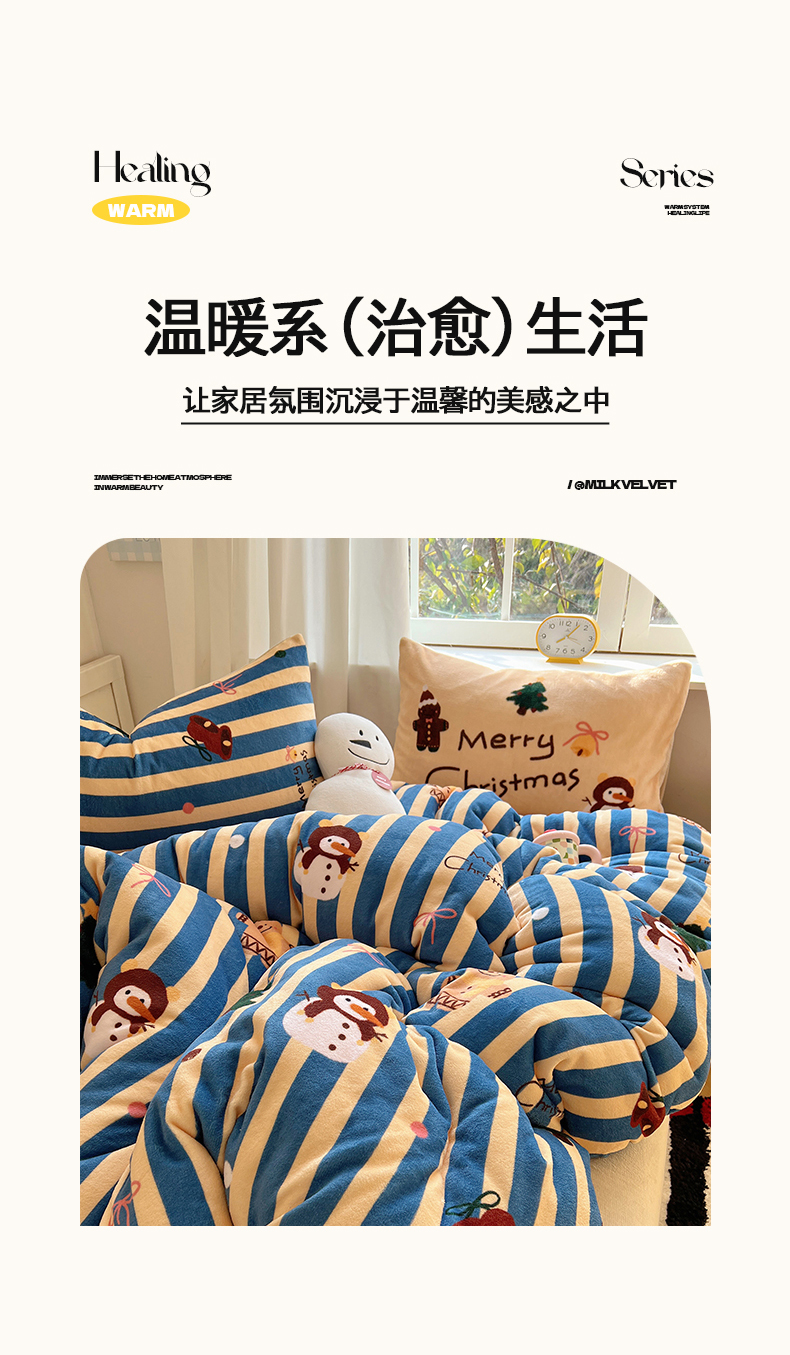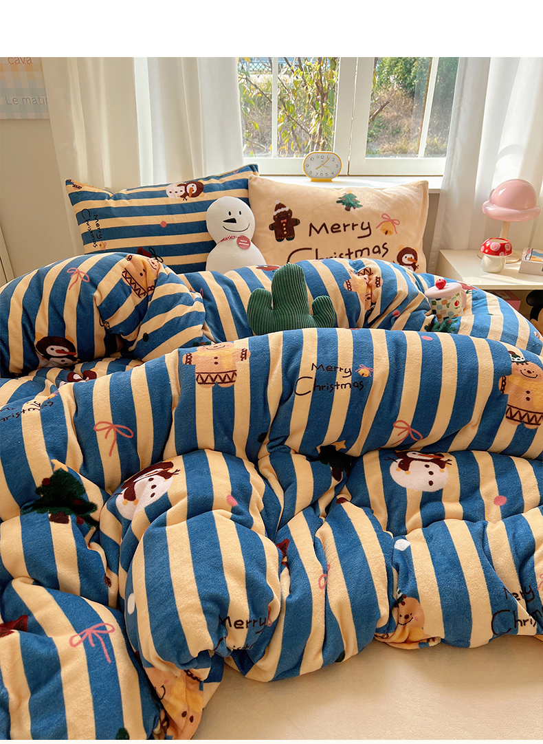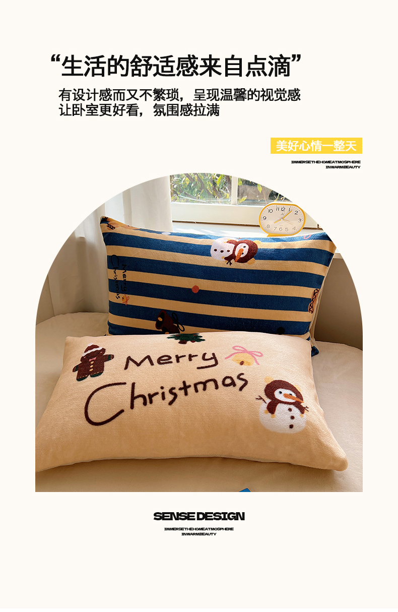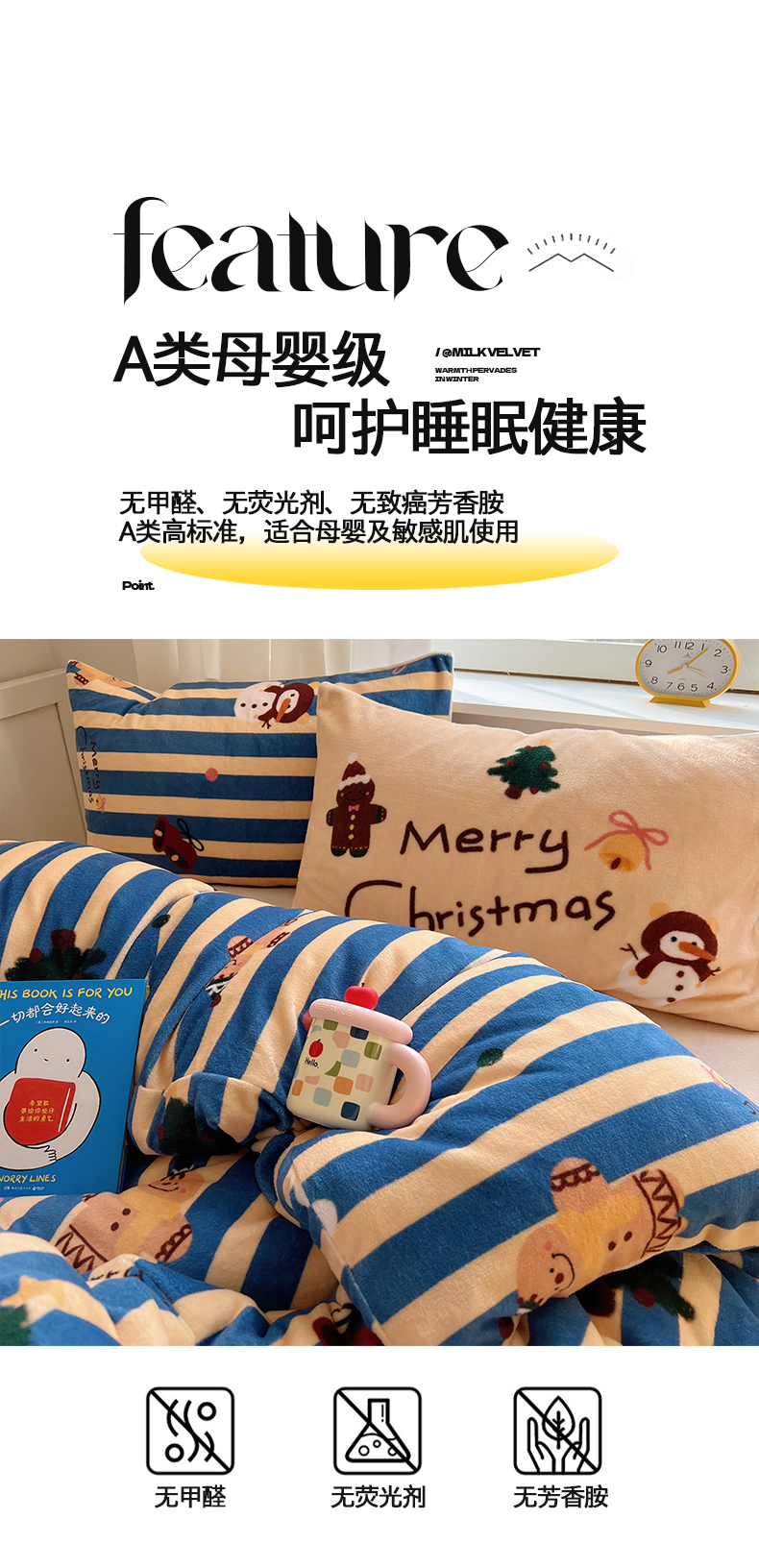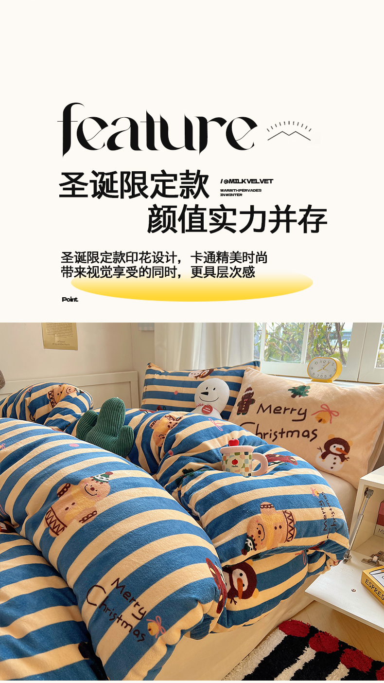 2025新款A类数码印花圣诞新年限定款猫咪小熊加厚牛奶绒系列四件套 绒-冬日圣诞雪人