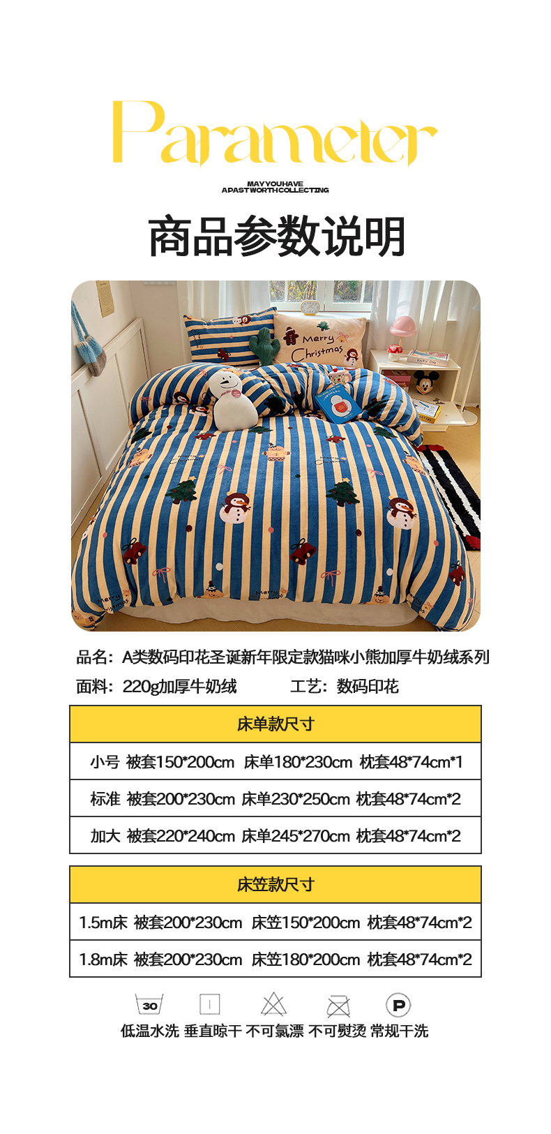 商品名称:2025新款A类数码印花圣诞新年限定款猫咪小熊加厚牛奶绒系列四件套 绒-冬日圣诞雪人