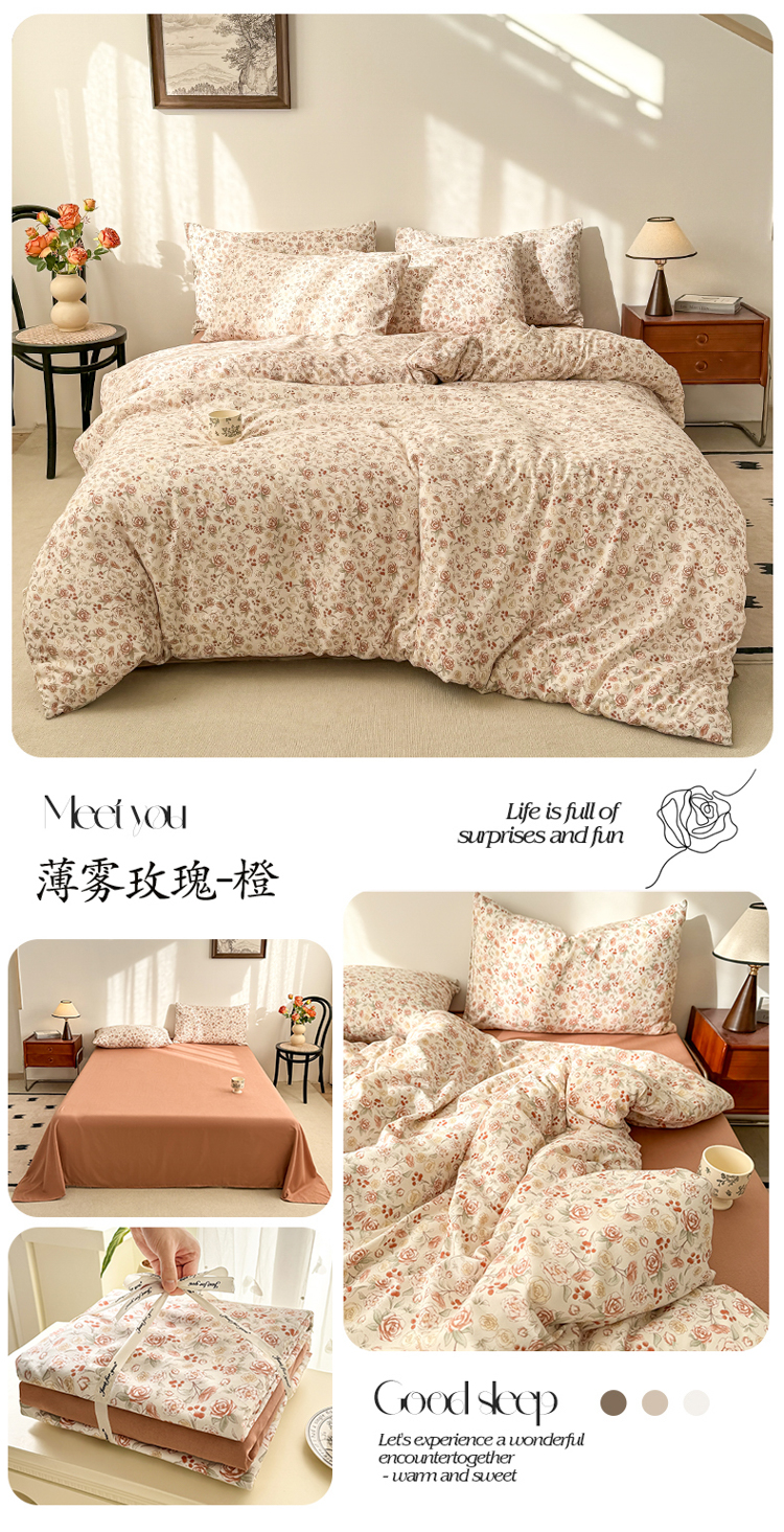 商品名称:2025年爆款新品有氧双层纱四件套-全系薄雾玫瑰-橙