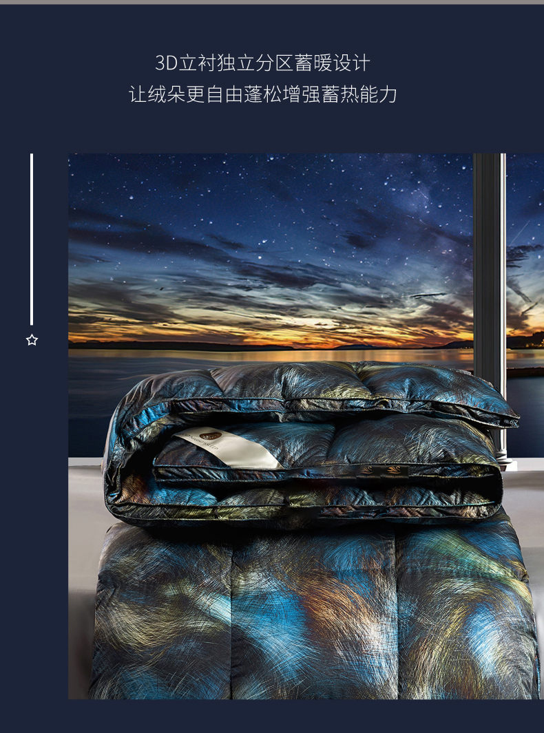 当前位置: 91家纺网 > 商品网购 > 被子 > 冬被 > 织梦人羽绒工厂店 2024新款新国标50绒云柔棉柔赛丝数码印花被子 极光