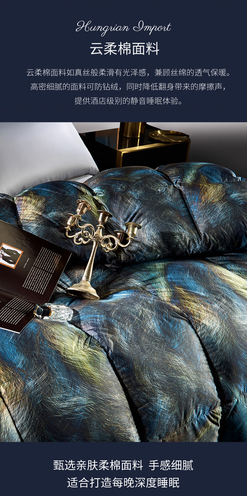 • 91家纺网 家纺一手货源 找家纺 (总)织梦人羽绒工厂店 2025新款高端100支长绒棉德国进口软银丝全棉95鹅绒羽绒被,凤翎-黑金