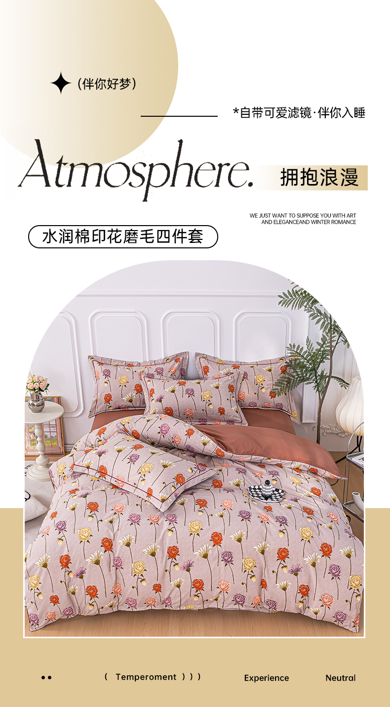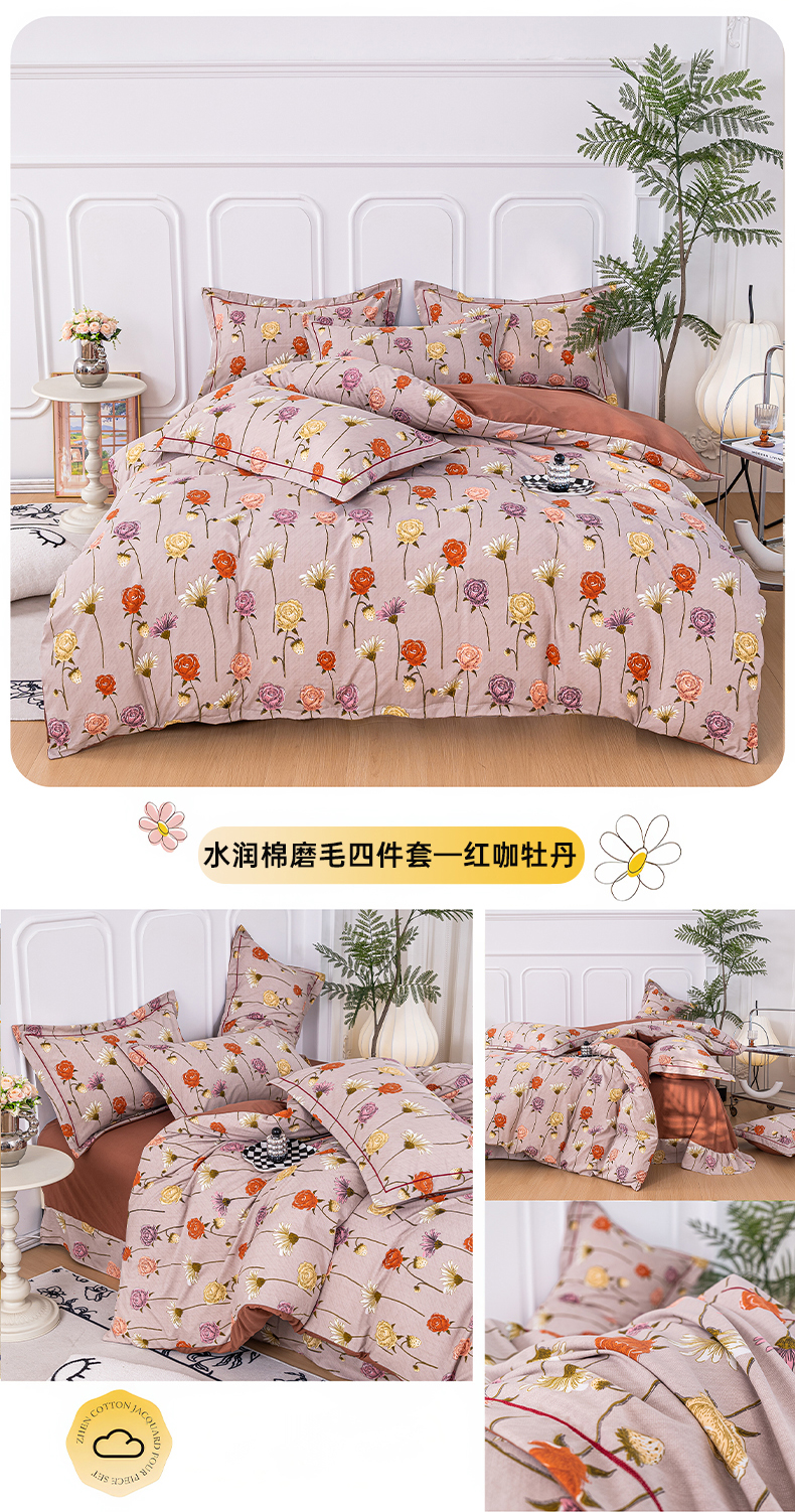 雅慕家居 2025新款A类碎花水润棉磨毛四件套 朵朵玫瑰