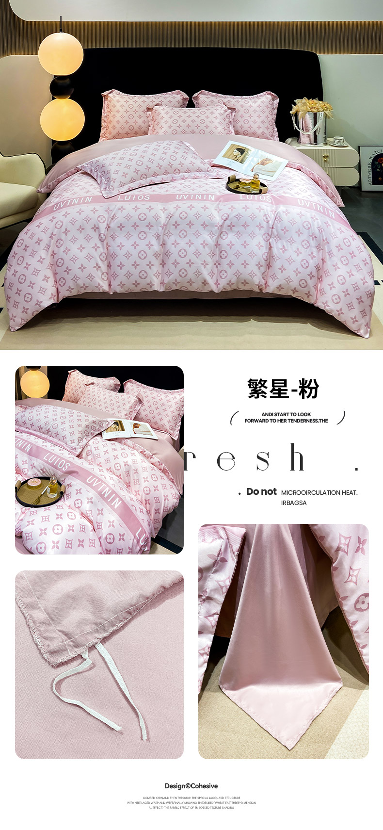 商品名称:(买家秀 爆款花型不断货)A类母婴级兰精天丝四件套兰精水洗天丝四件套高端莱赛尔天丝床上用品四件套真丝 繁星-粉
