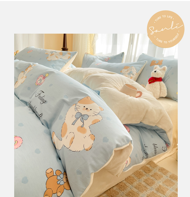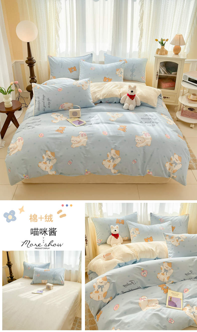当前位置: 91家纺网 > 商品网购 > 床品套件 > 四件套 > 其它四件套 > 麦伦家居 2025秋冬新品多功能床品全棉+牛奶绒印花四件套 猫咪酱