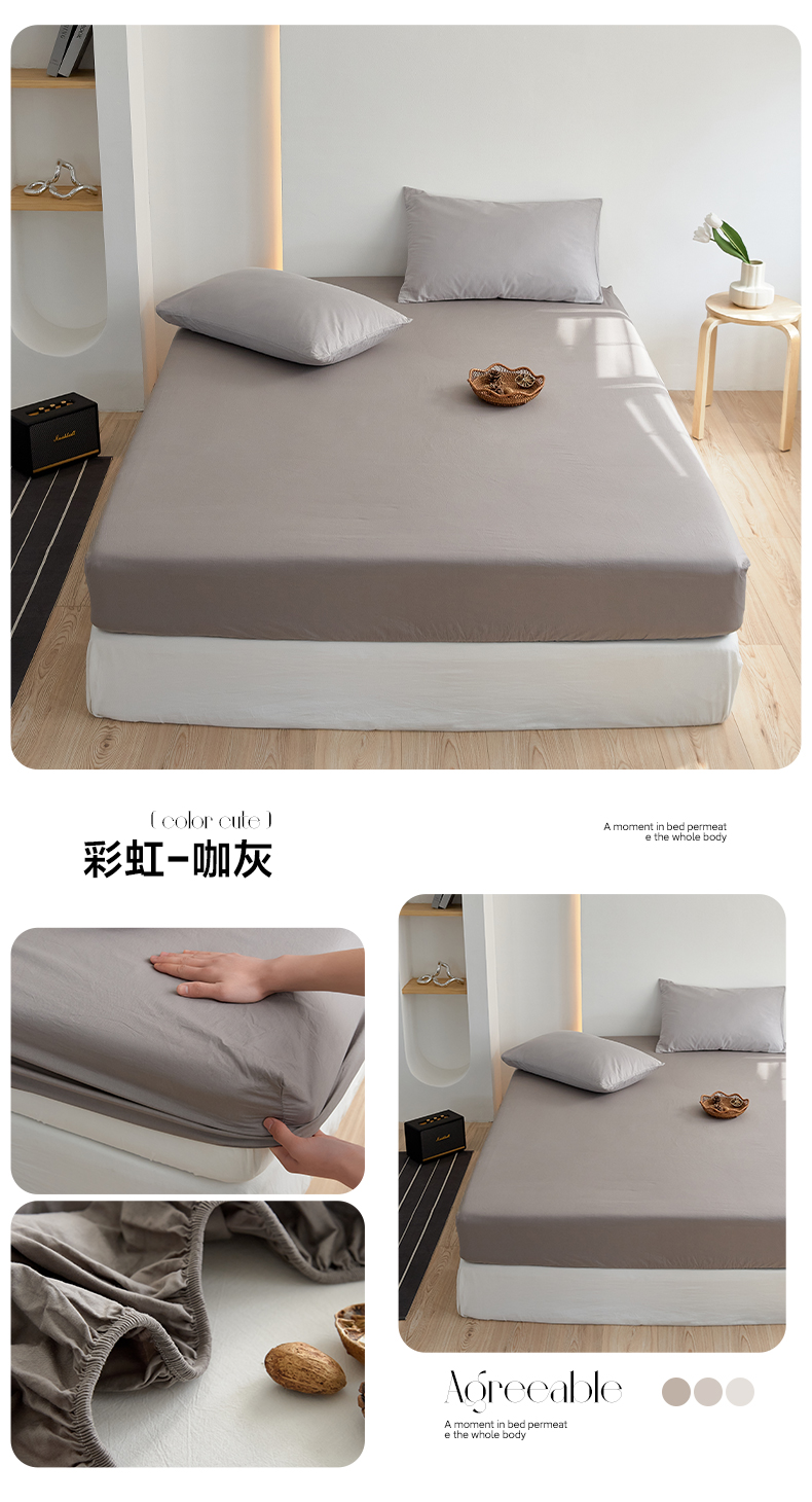 • 91家纺网 家纺一手货源 找家纺 2025春夏新款40支纯色彩虹糖系列单品床笠 彩虹-咖灰