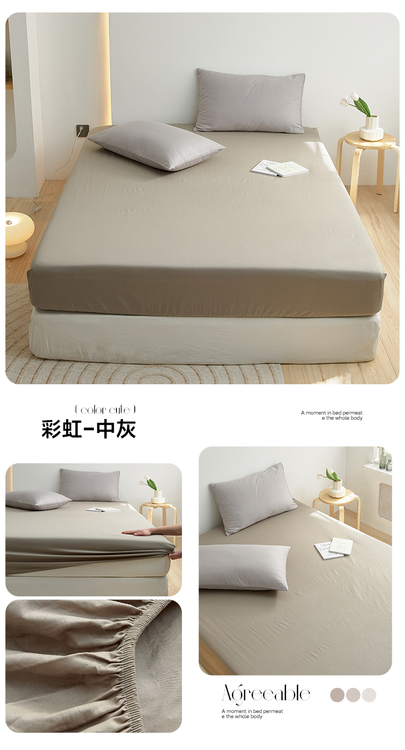 • 91家纺网 家纺一手货源 找家纺 2025春夏新款40支纯色彩虹糖系列单品床笠 彩虹-中灰