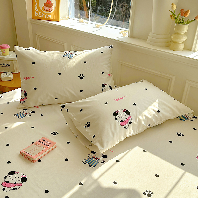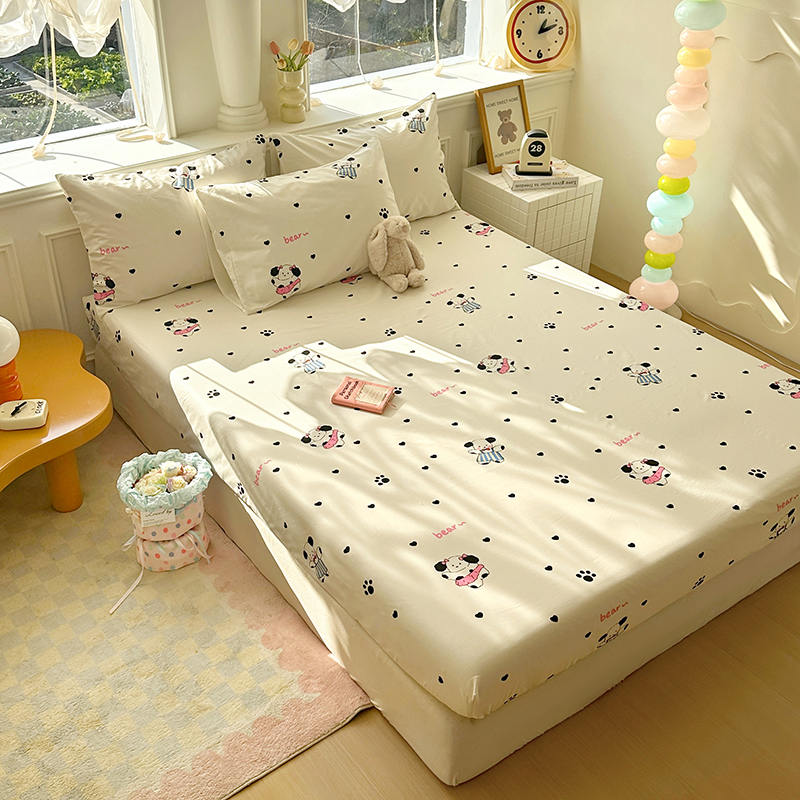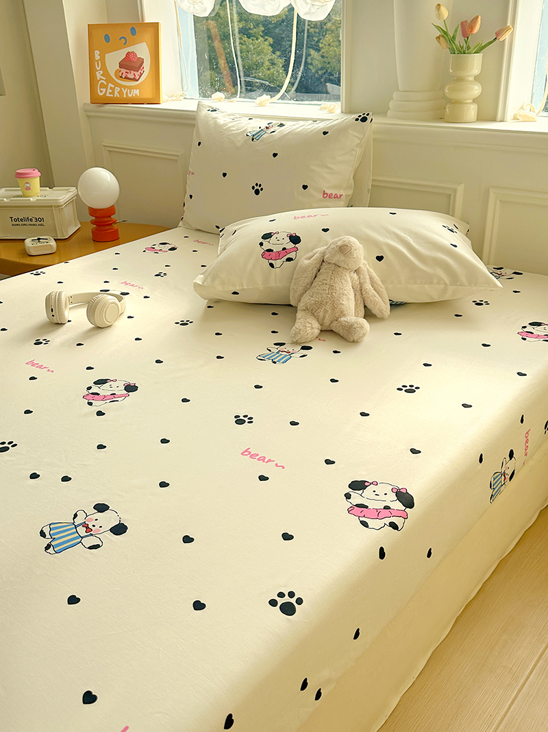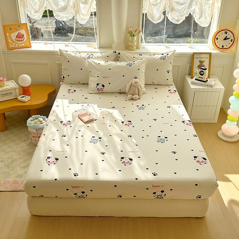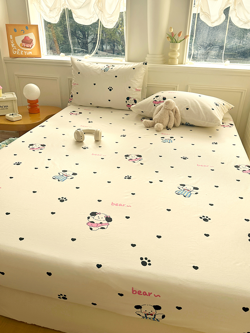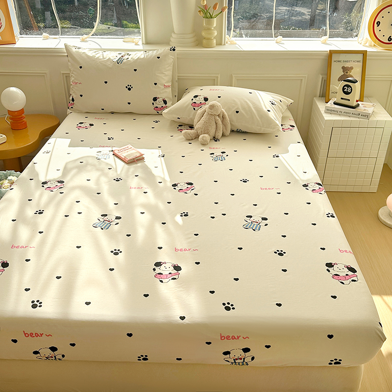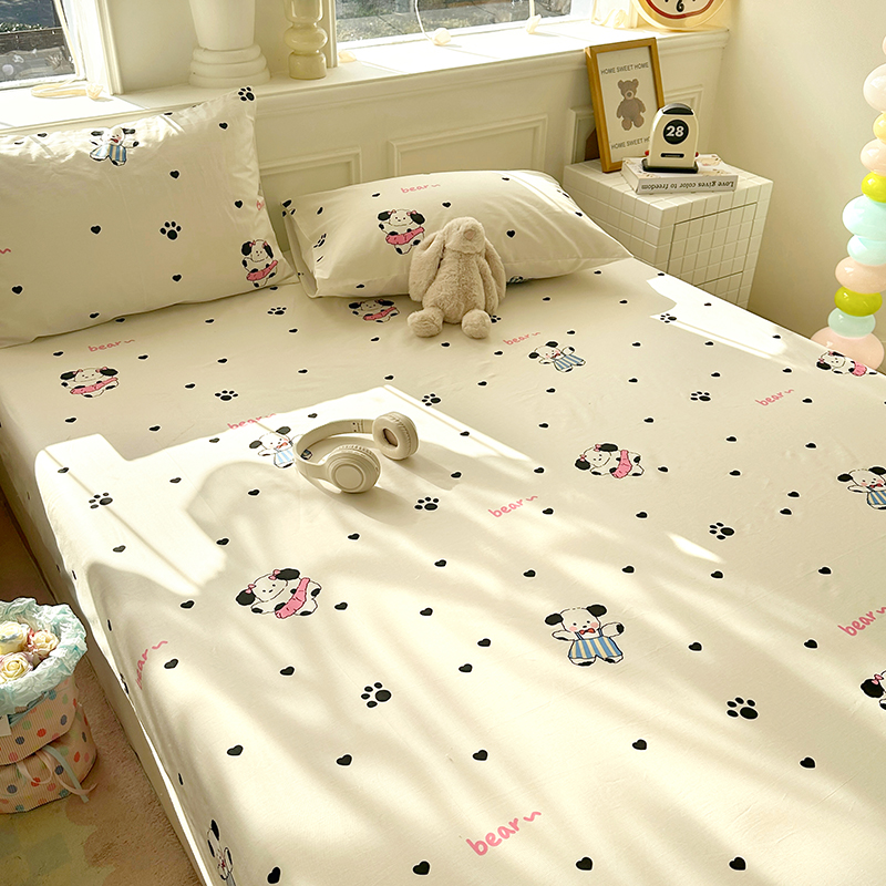 商品名称:希诺家居 2025新款全棉纯棉卡通小清新床笠 甜心小熊