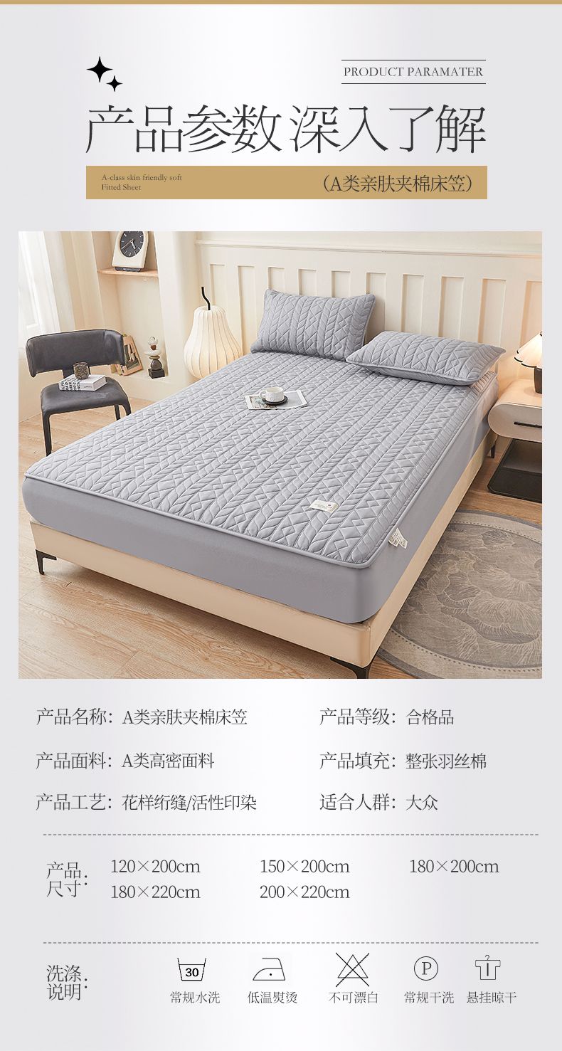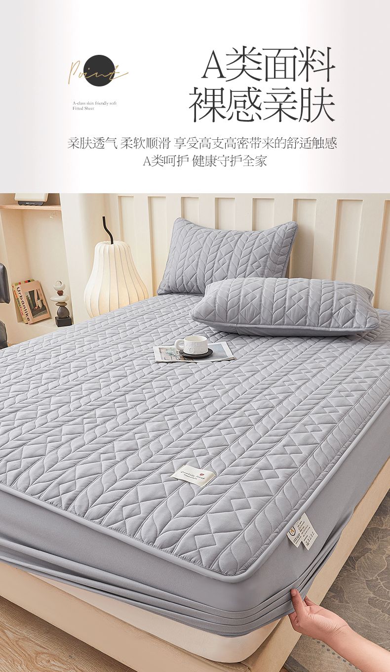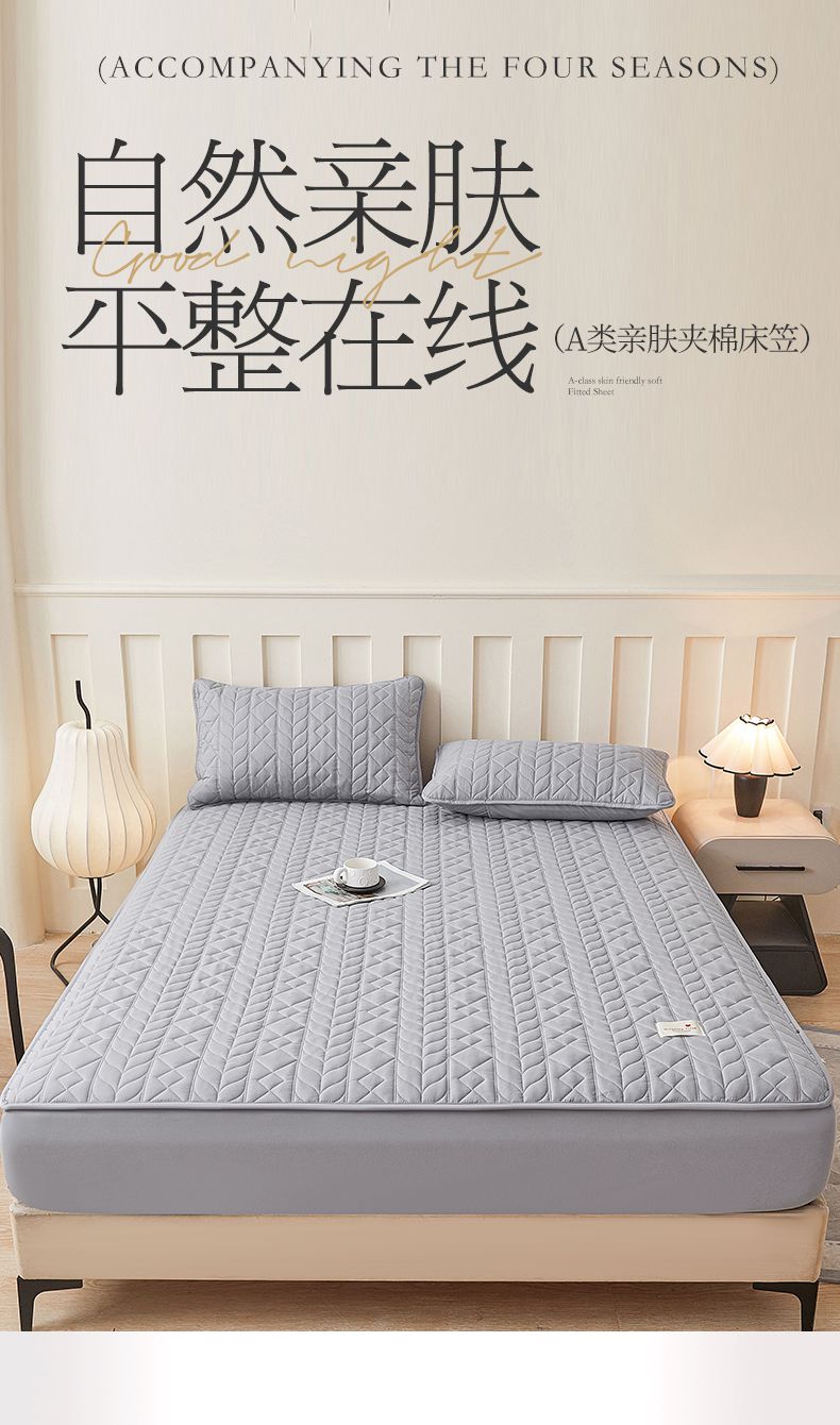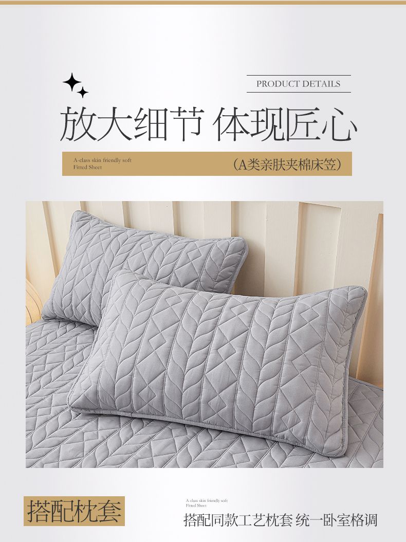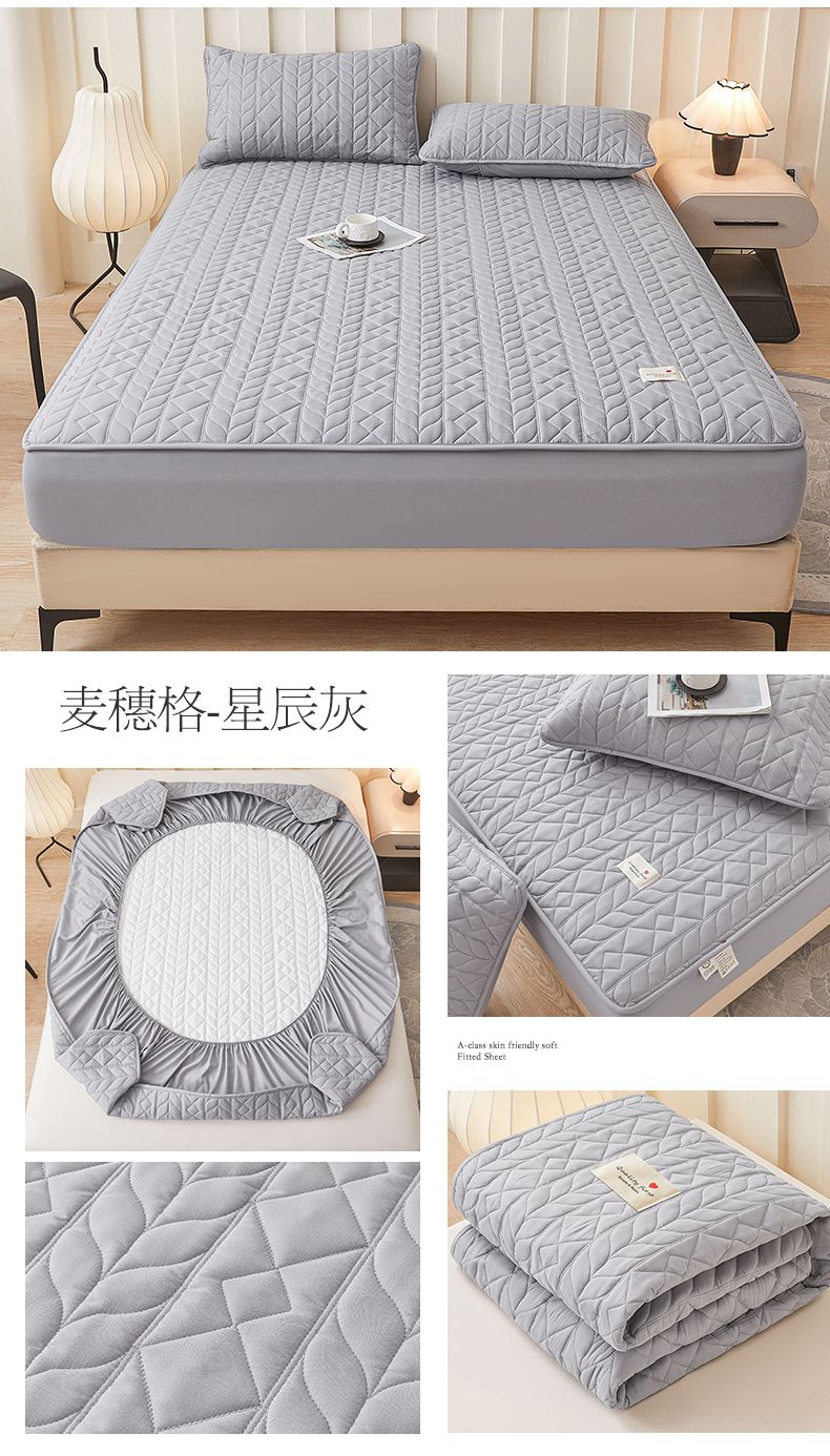 • 91家纺网 家纺一手货源 找家纺 3C 2025新款A类亲肤夹棉床笠-麦穗格 麦穗格 星辰灰