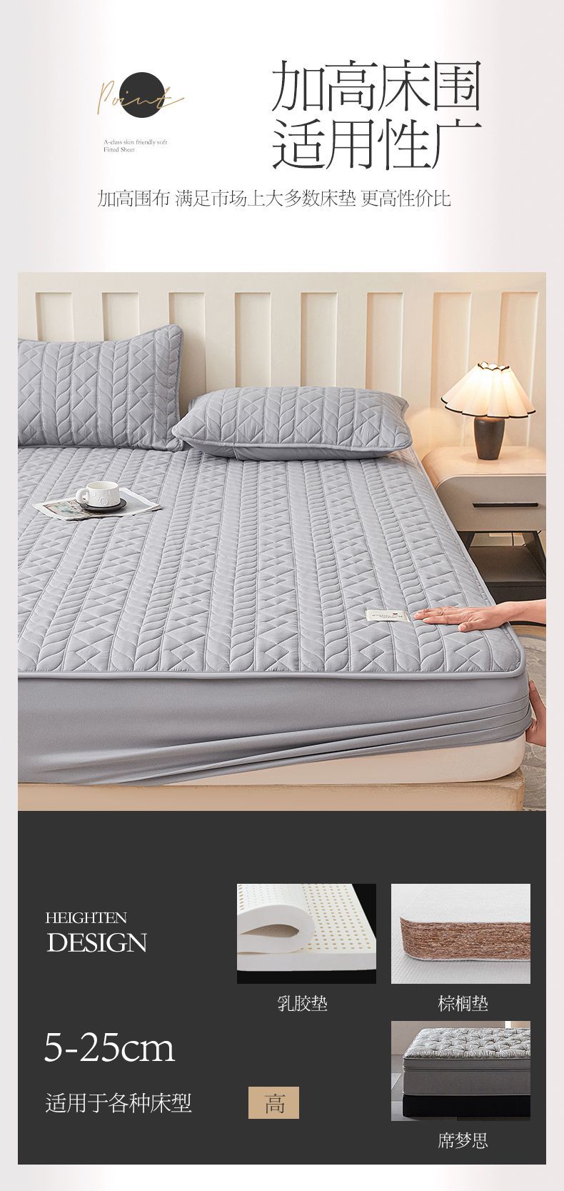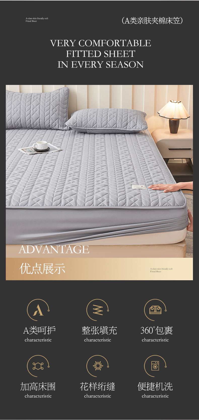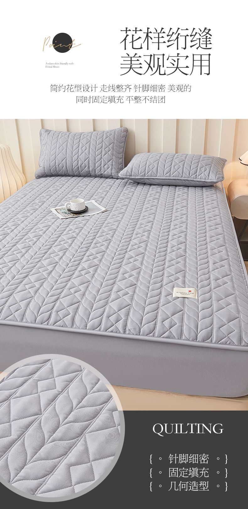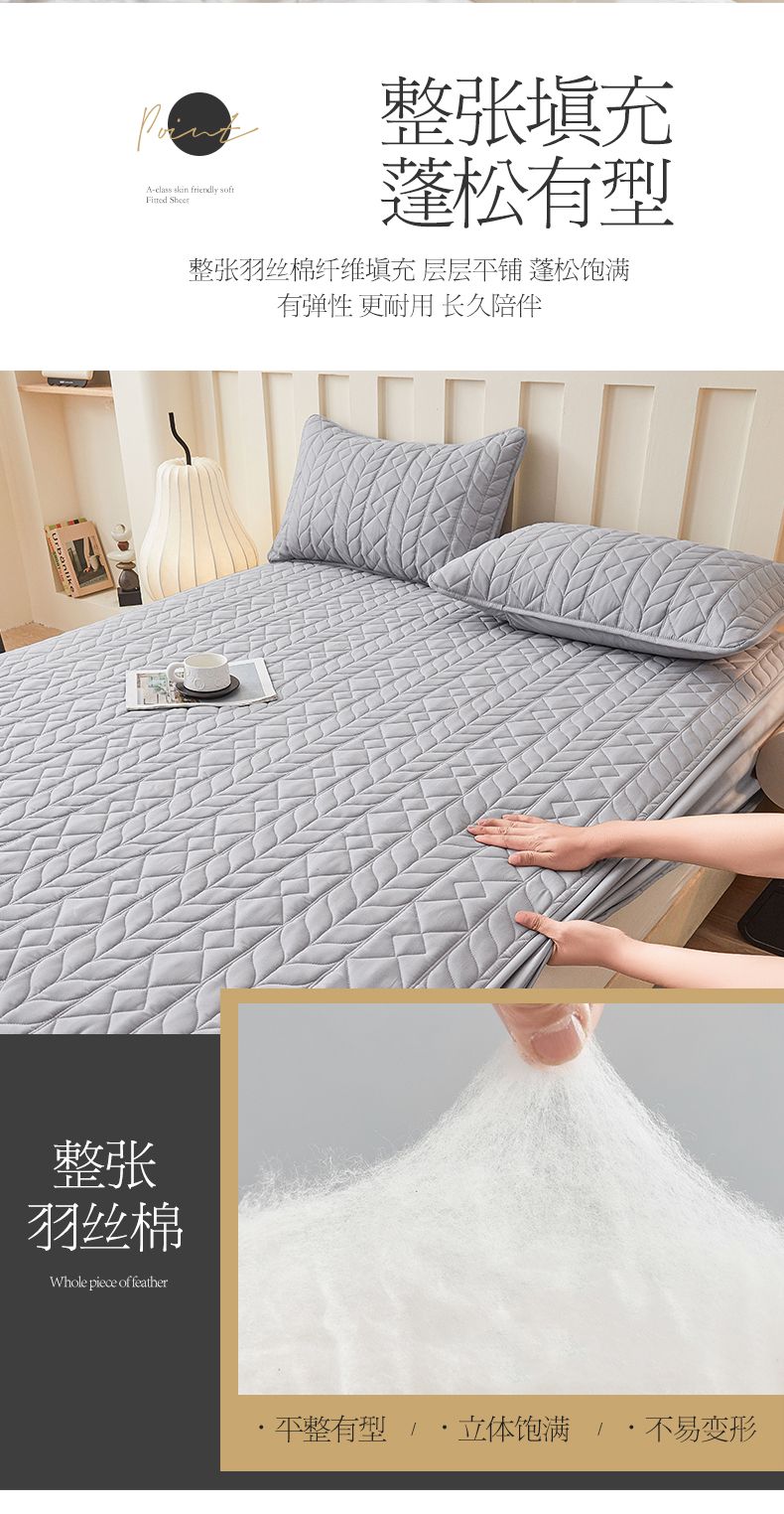 • 91家纺网 家纺一手货源 找家纺 3C 2025新款A类亲肤夹棉床笠-麦穗格 麦穗格 星辰灰