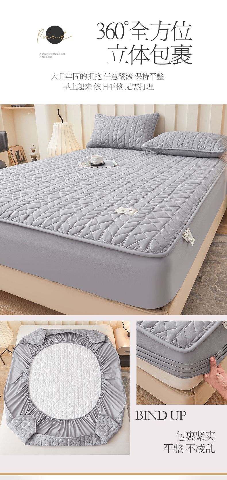 (总)3C 2025新款100支全棉抗菌夹棉床笠,韵律 白,韵律 灰