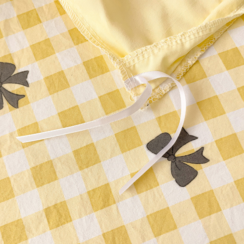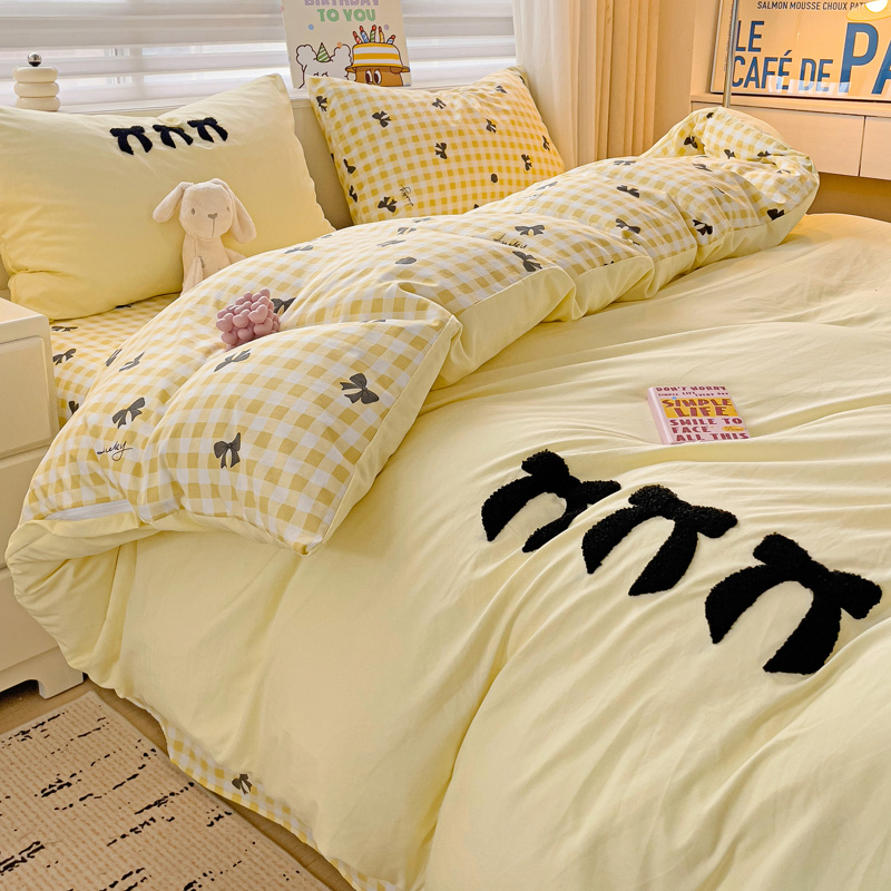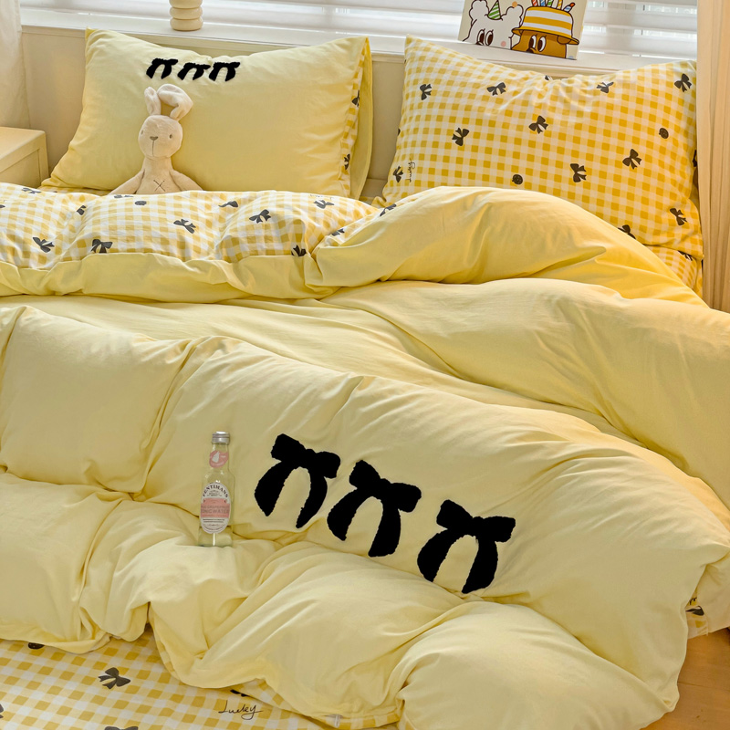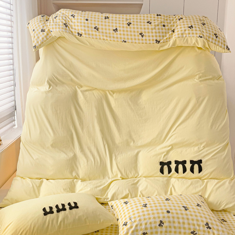 商品名称:一霖家纺 2024新款高克重云朵棉毛巾绣印+绣小清新系列四件套蝴蝶结-黄