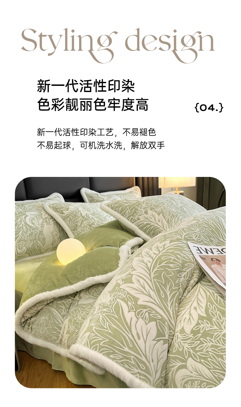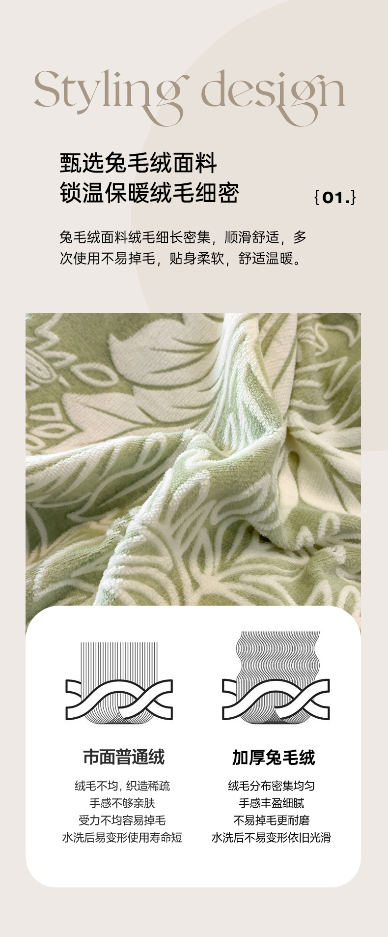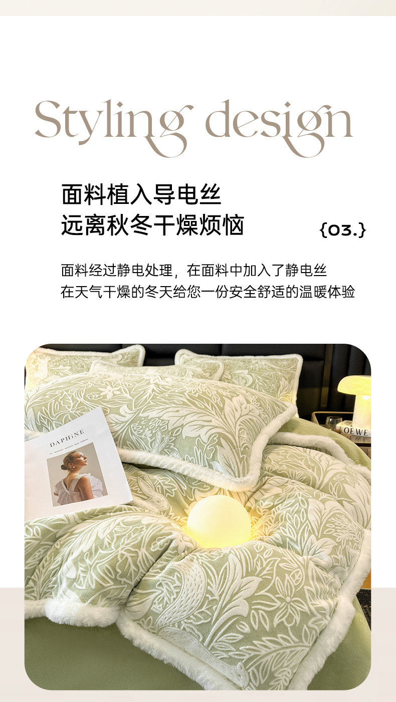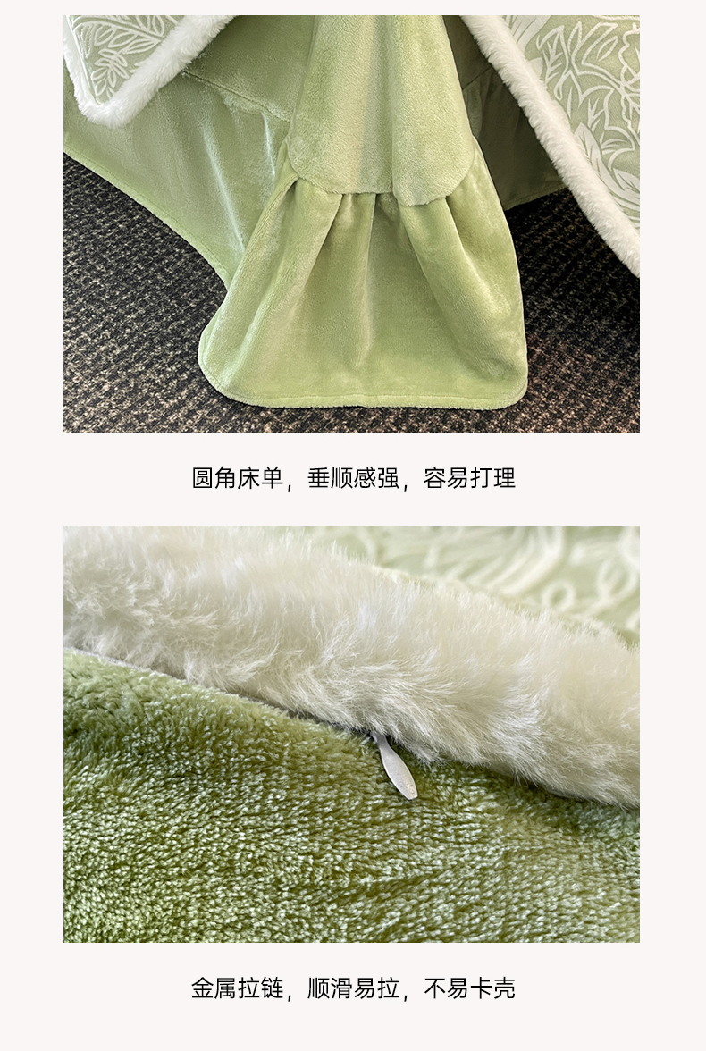 畅畅家纺 2025新款兔毛绒大包边雕花牛奶绒绒四件套 香缇娜-绿