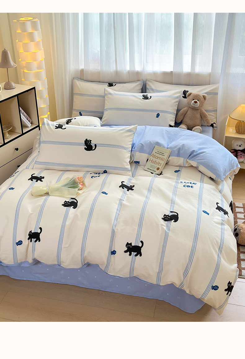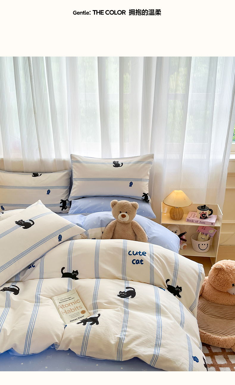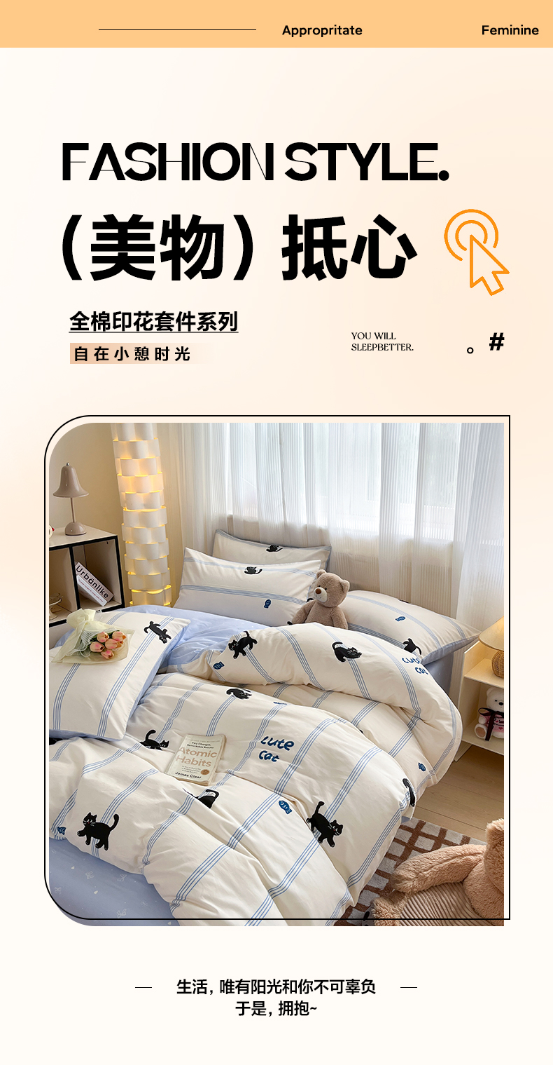 雅居纺家纺 2025新款全棉小清新四件套 可爱小猫