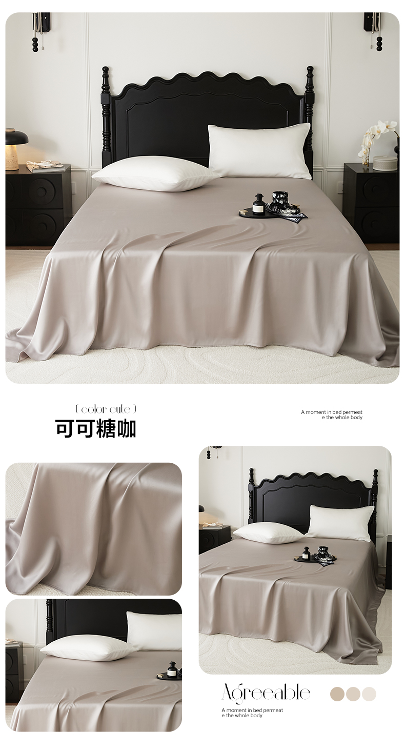 • 91家纺网 家纺一手货源 找家纺 EH家居 2025春夏天丝纯色单床单 可可糖咖