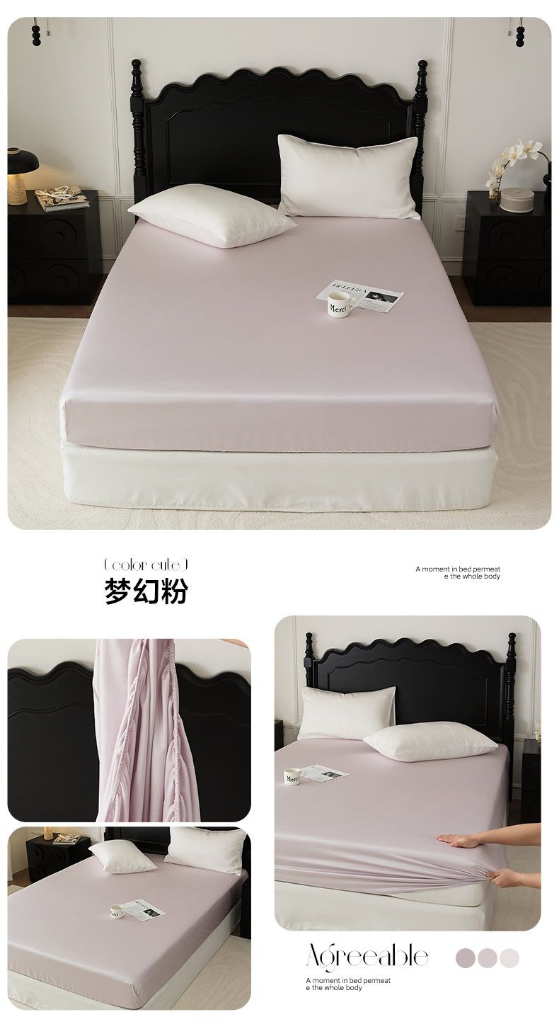 • 91家纺网 家纺一手货源 找家纺 EH家居 2025春夏天丝纯色单床笠 梦幻粉