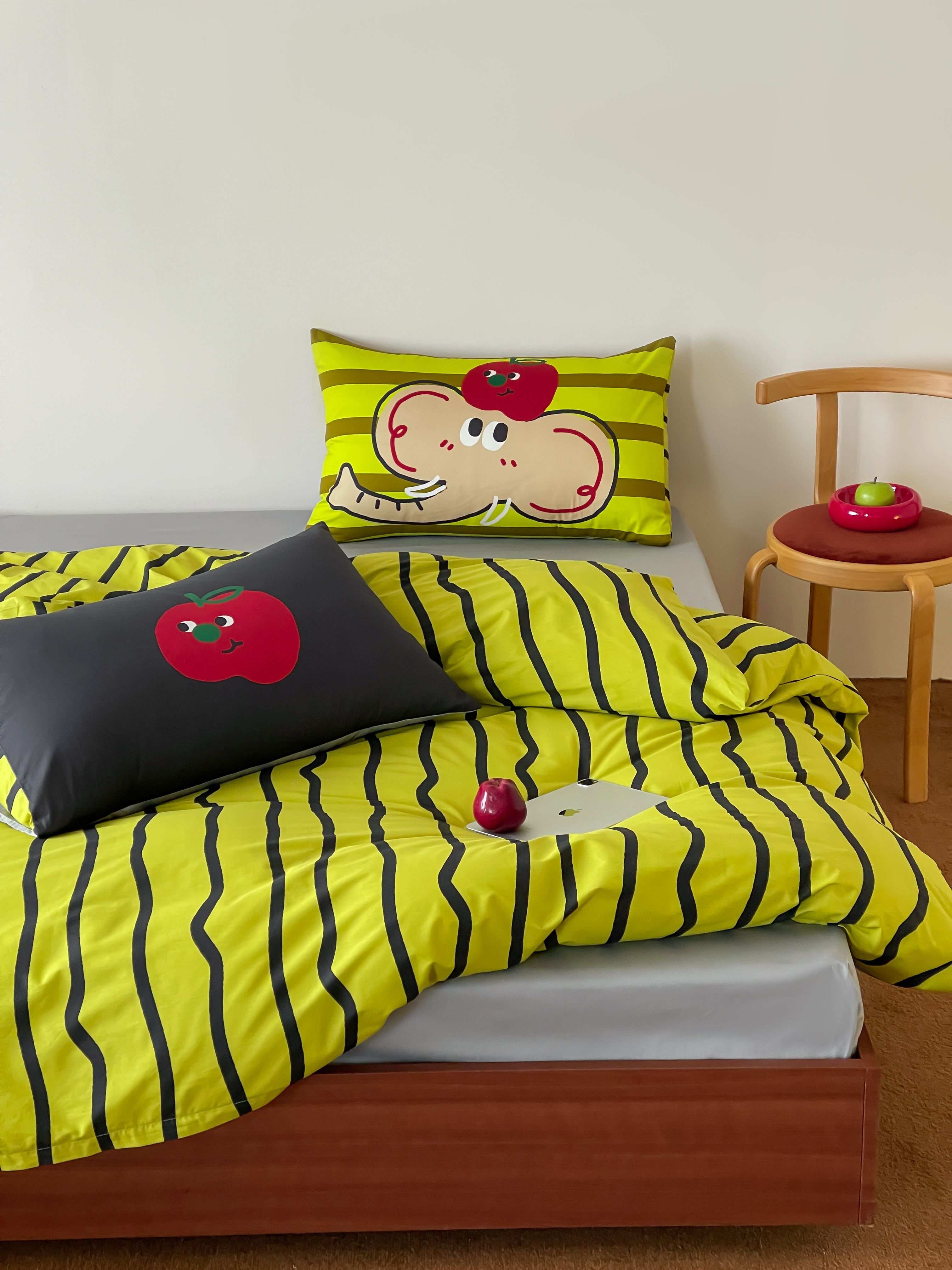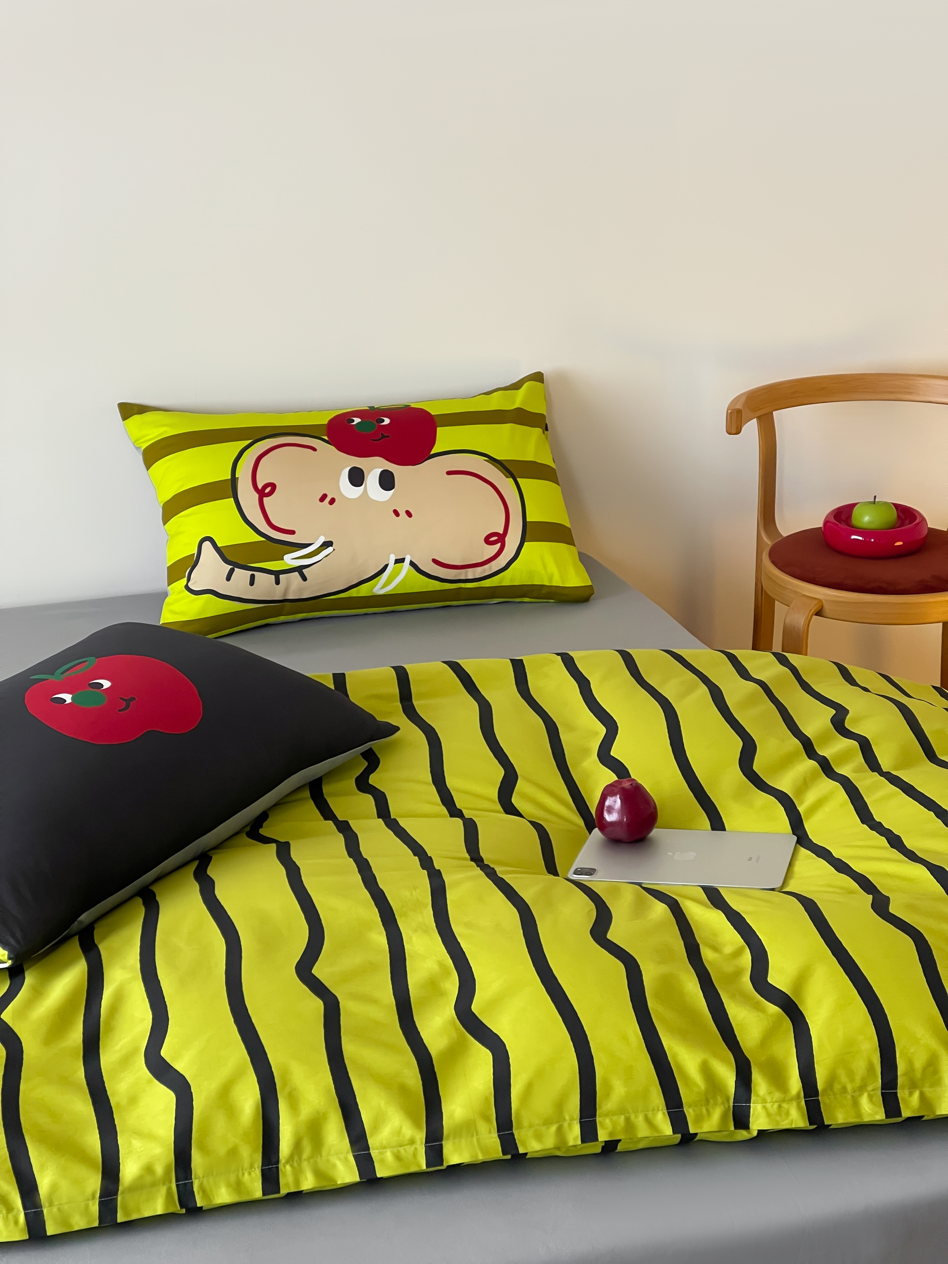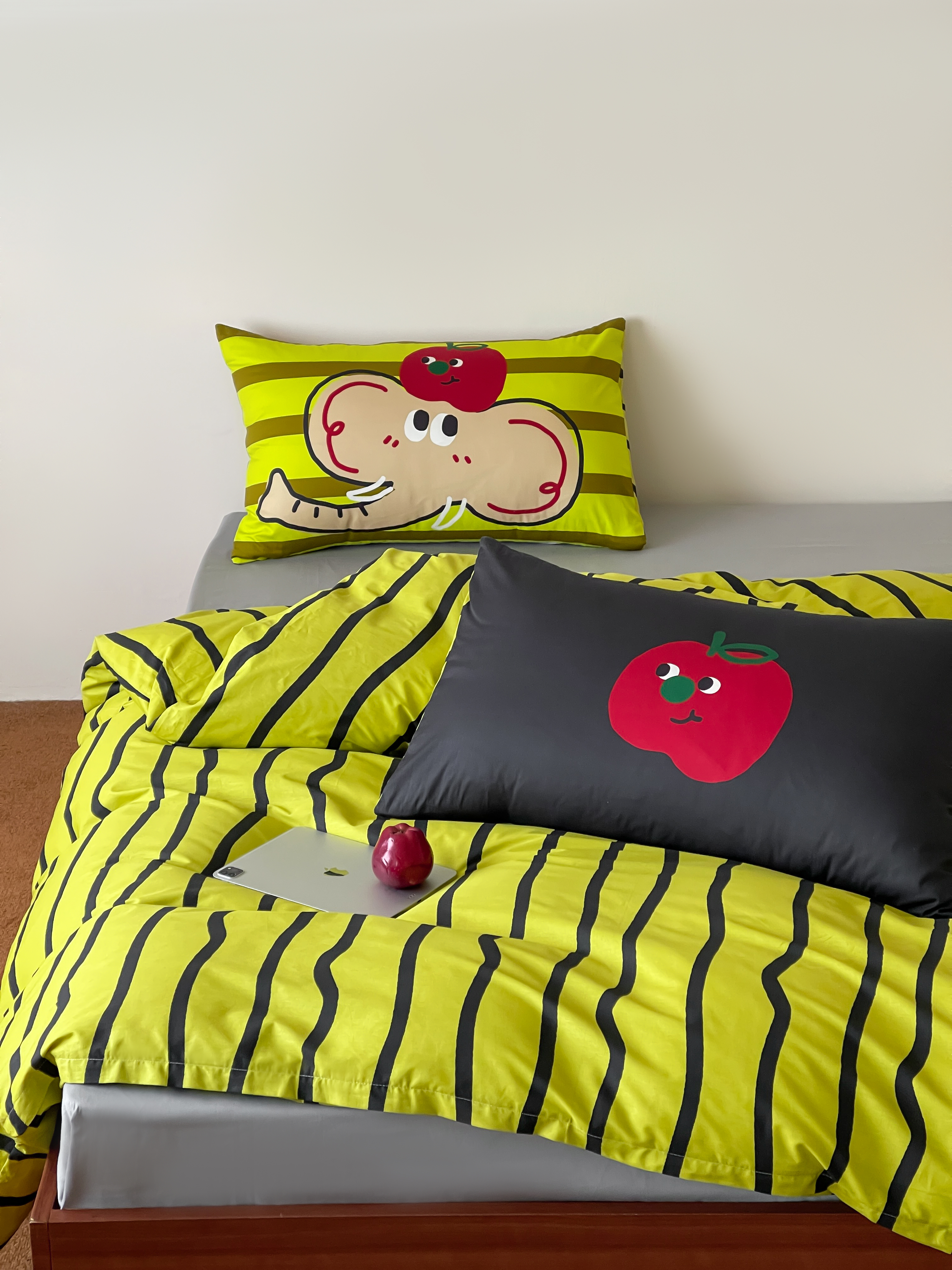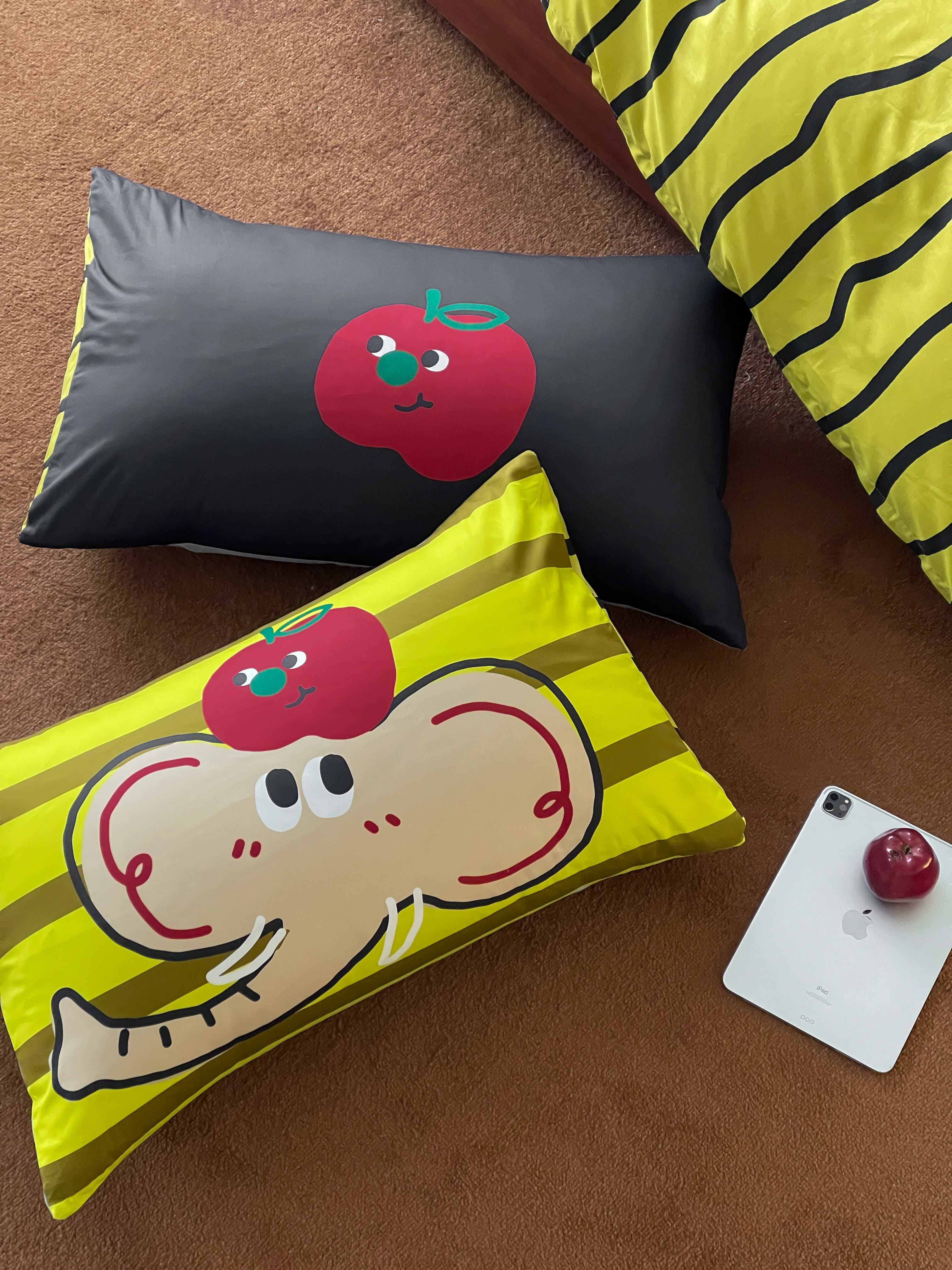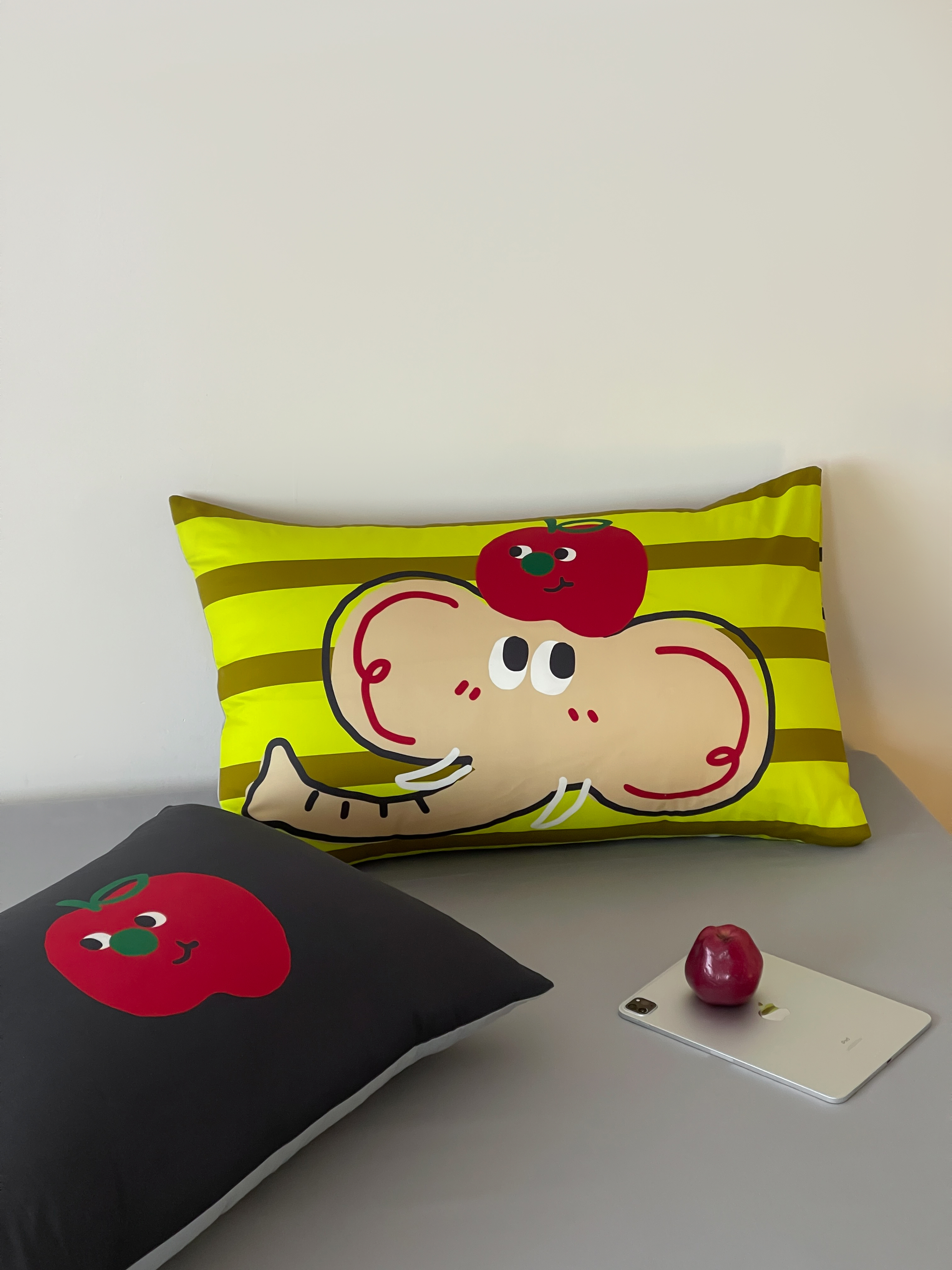 觅糖2025年全棉双数码枕套卡通印花混搭系列 苹果小象