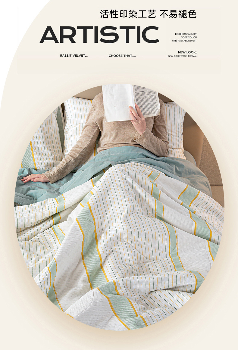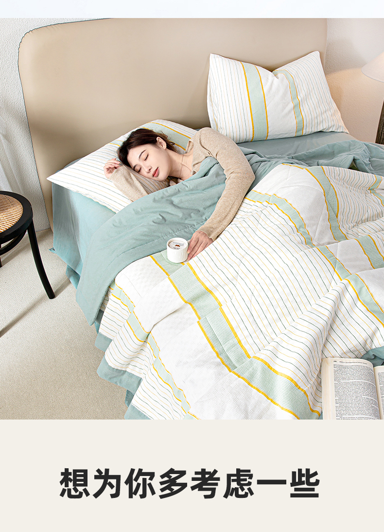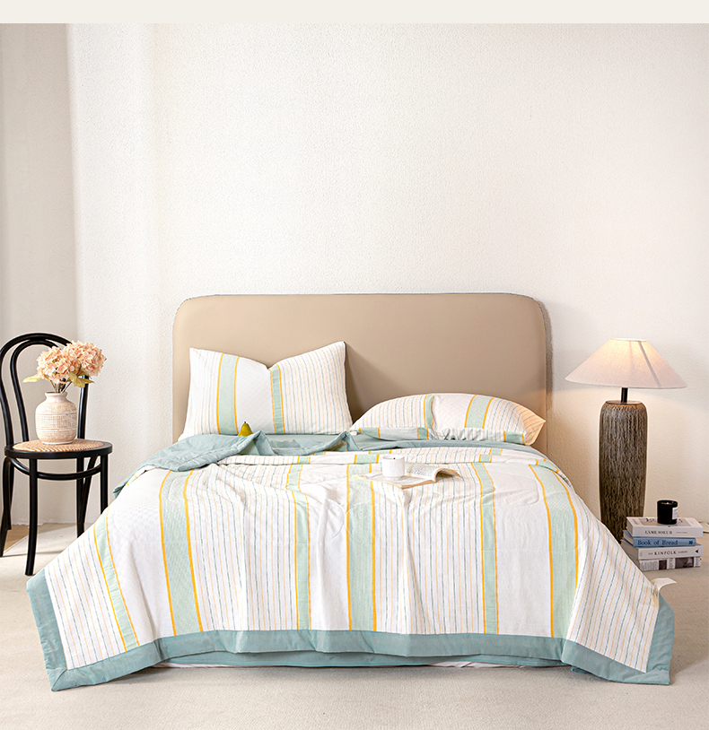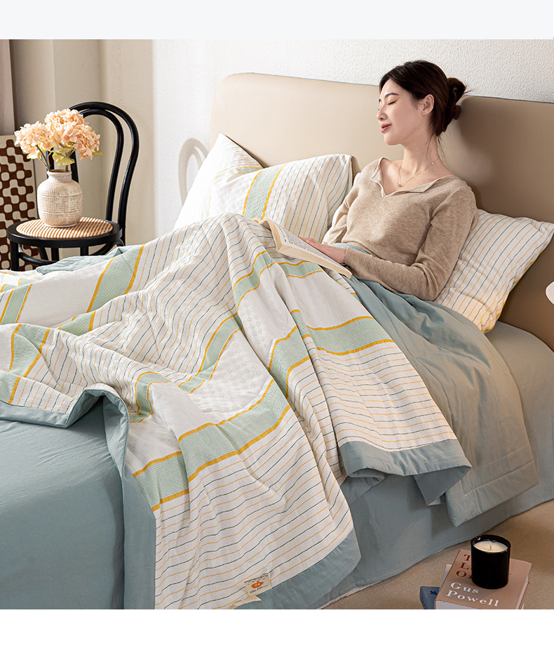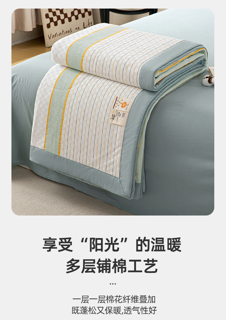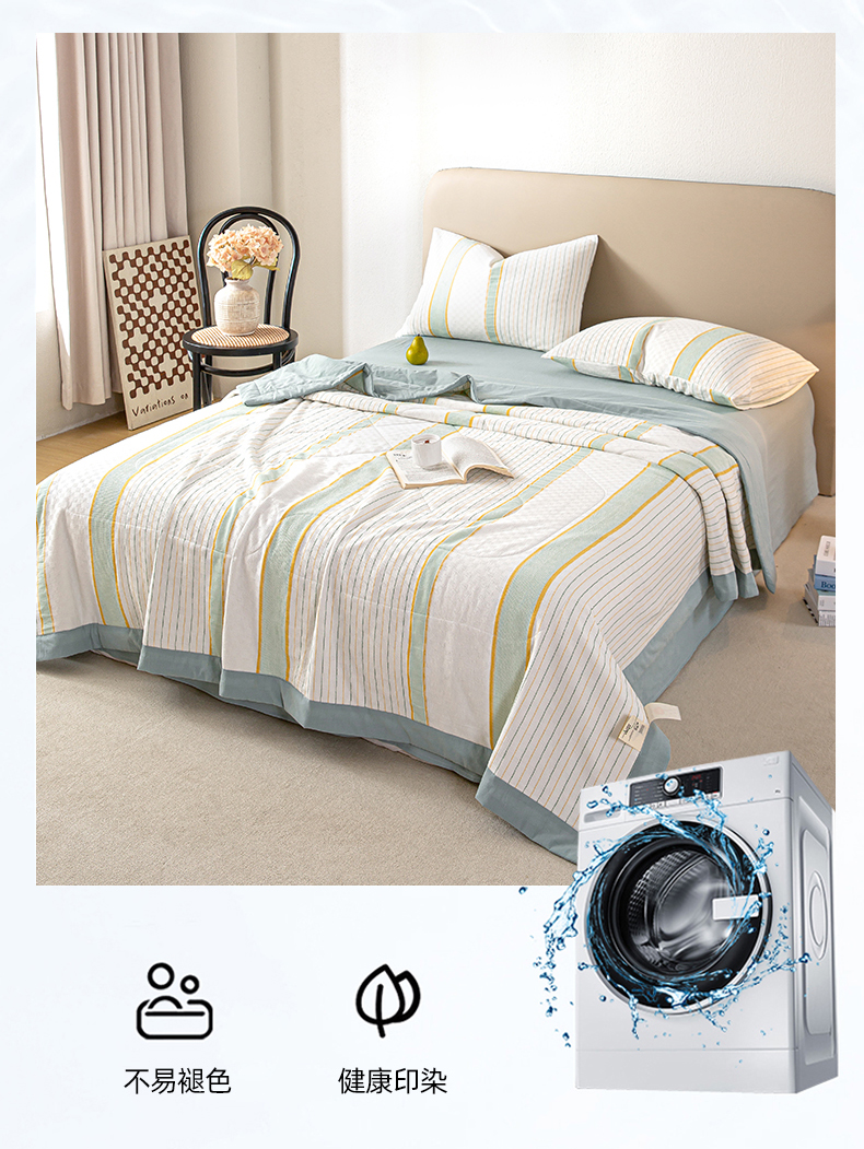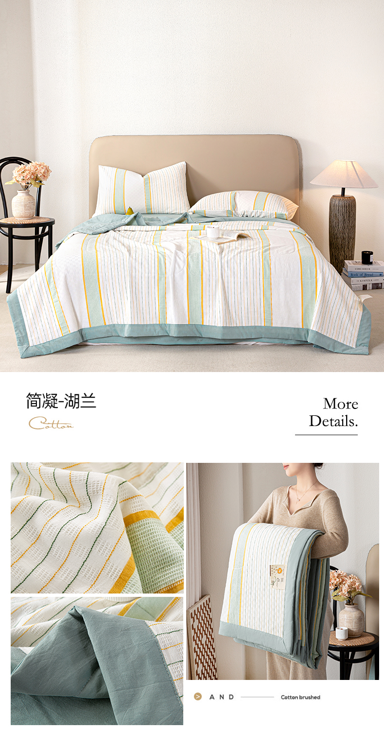 • 91家纺网 家纺一手货源 找家纺 2025新款全棉水洗棉提花100%棉花被夏凉被纯棉夏被被子被芯 简凝-湖兰