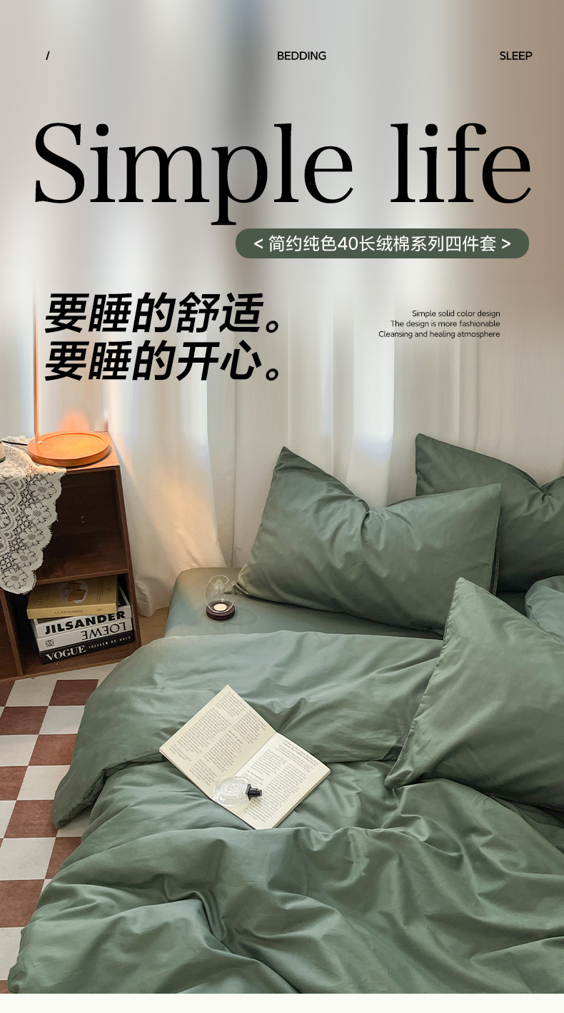 商品名称:(总)2025新款40支长绒棉ins美拉德色系纯色全棉四件套床笠极简三件套纯棉四件套系列--四件套