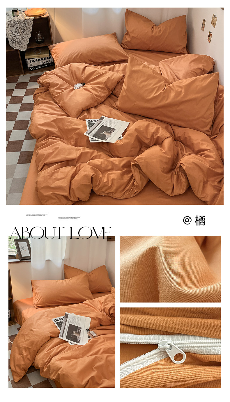 (总)2025新款40支长绒棉ins美拉德色系纯色全棉四件套床笠极简三件套纯棉四件套系列--四件套