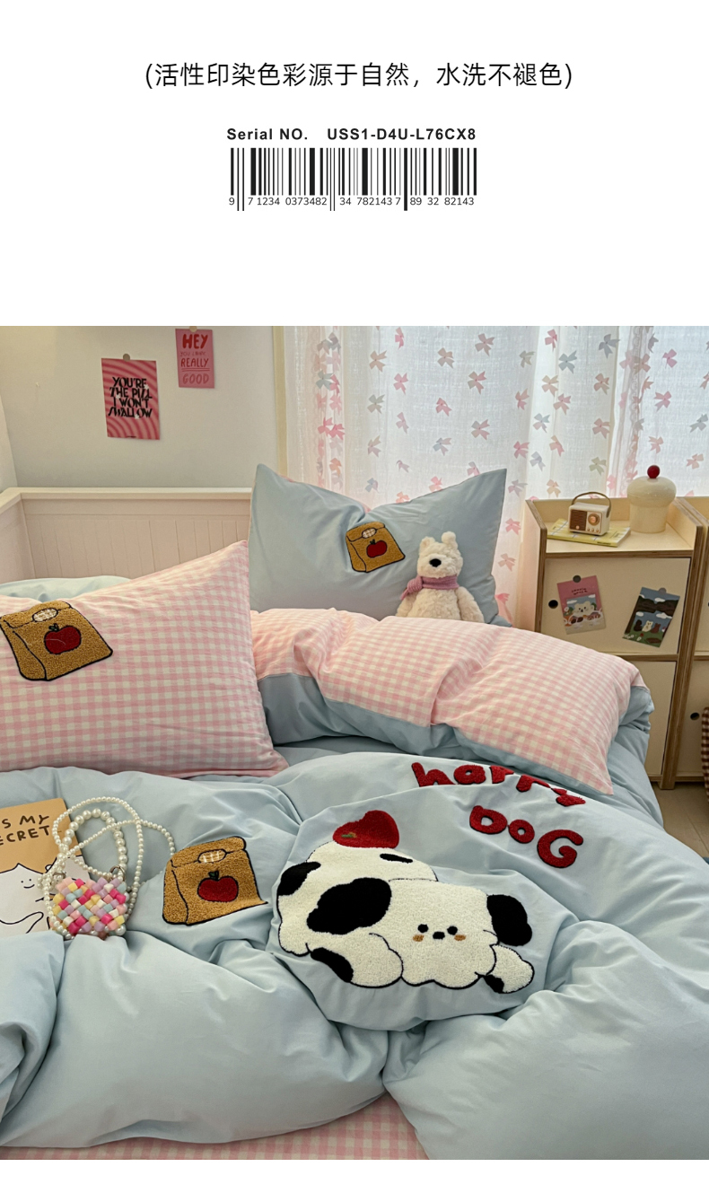 (总)呗旺鹿 2025新款卡通棉+牛奶绒四件套系列,QQ乐园,多彩笑脸,小萌鸭,蘑菇狗,奶油小熊,曲奇小熊