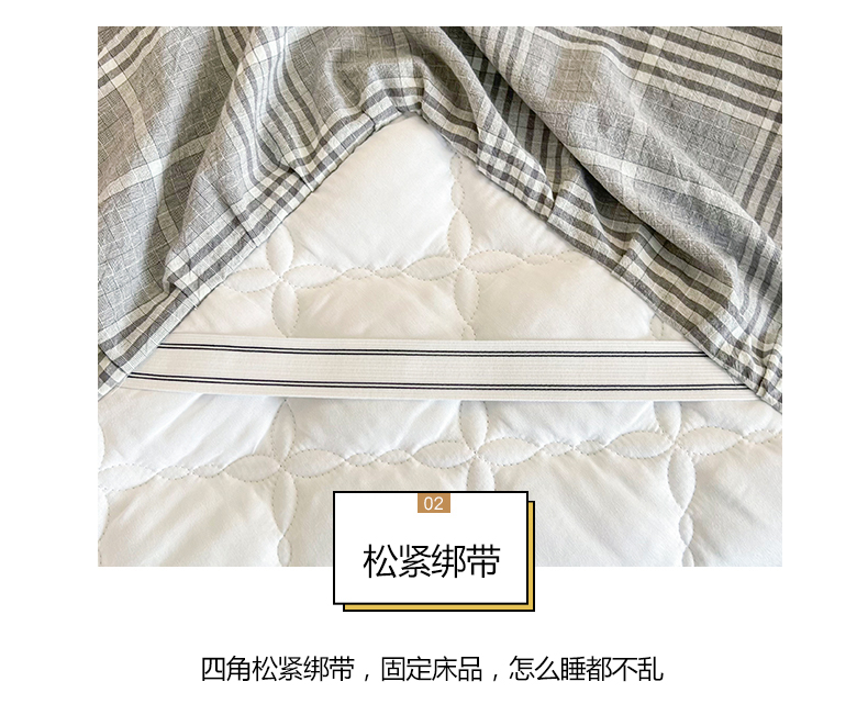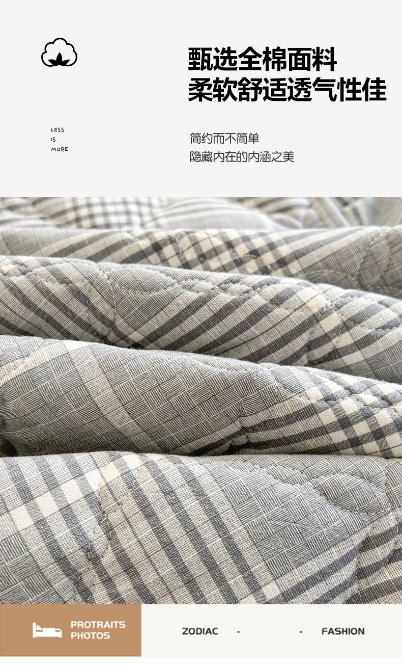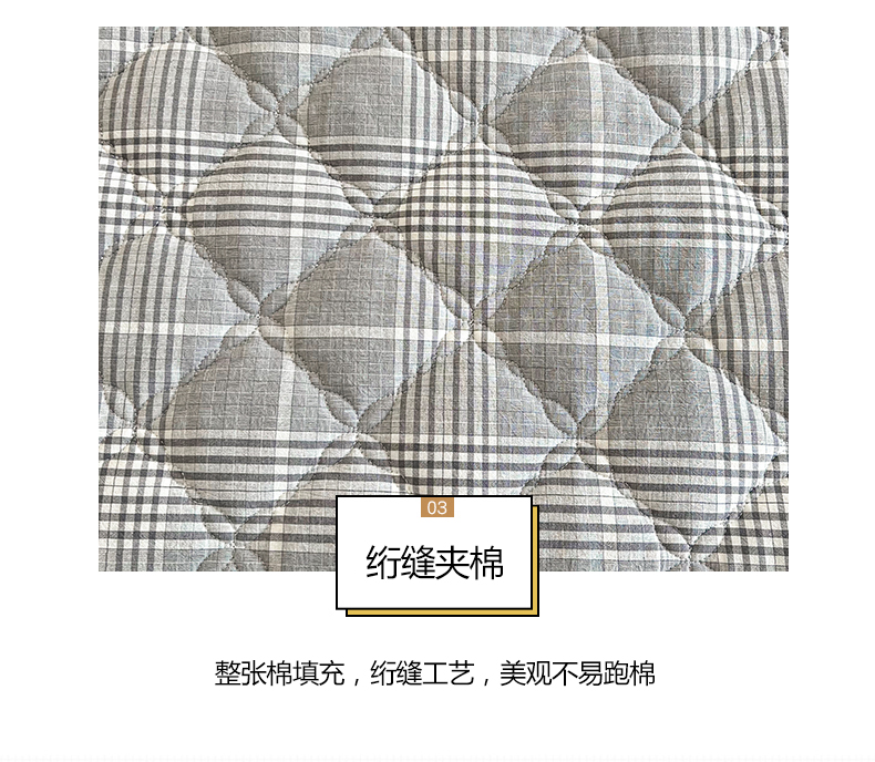 (总)糯米猪家纺 2023新款亲肤棉六面全包夹棉床笠--时尚格,水蓝,深蓝,灰色,白色,米色,粉玉