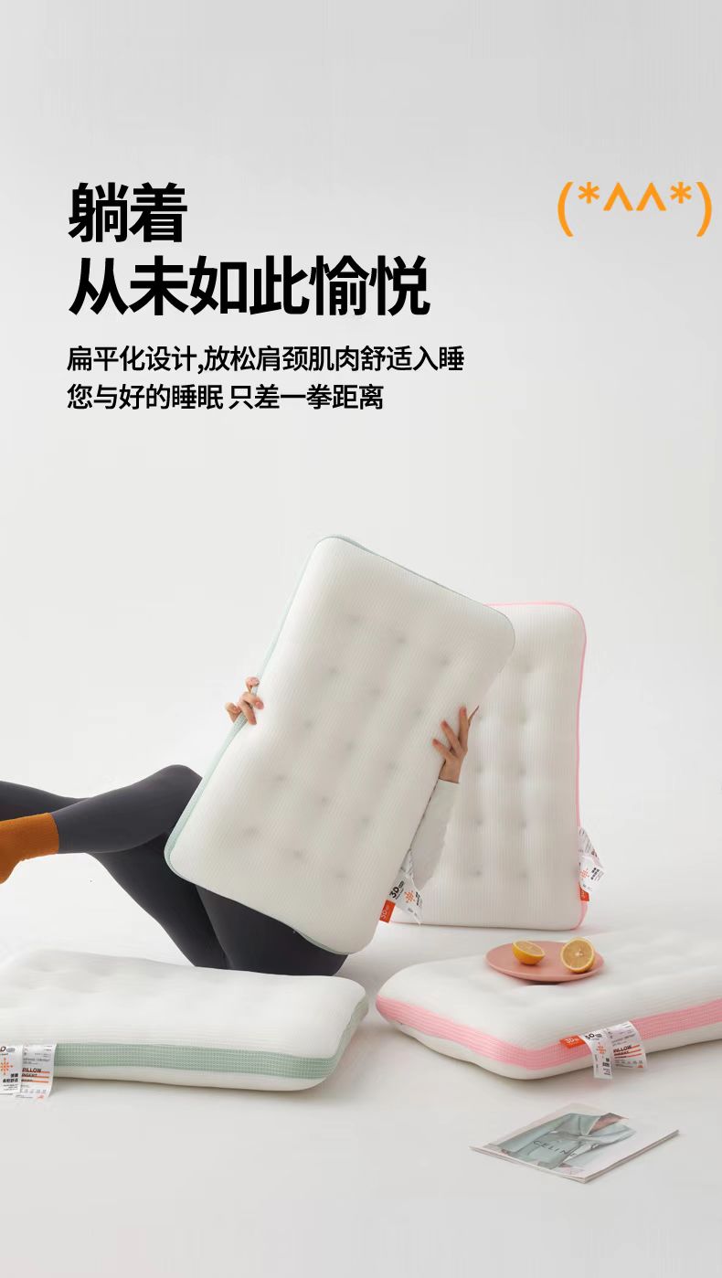 (总)畅新芯 2025新款3D网眼科技吸湿透气水洗枕低枕,绿色,粉色