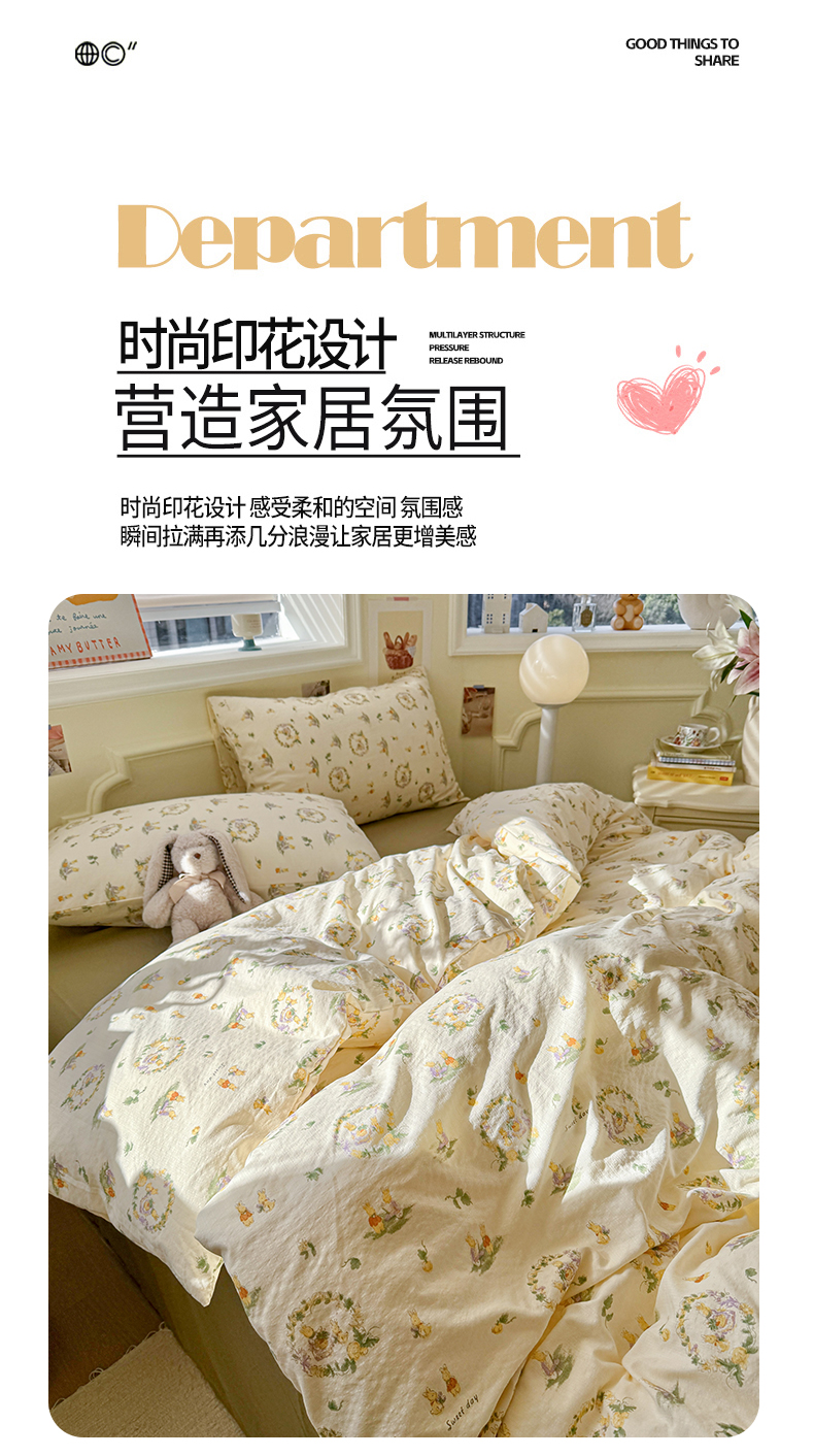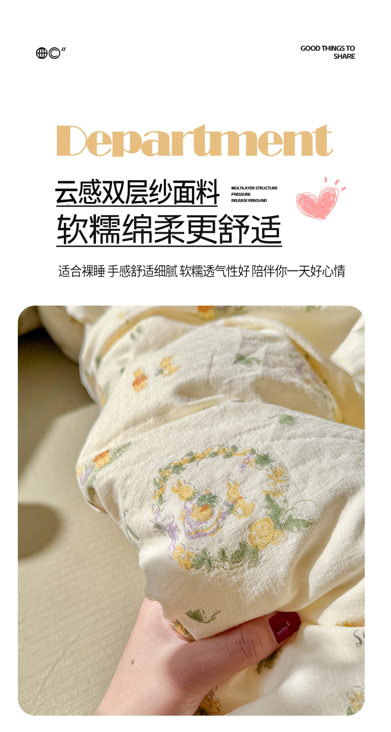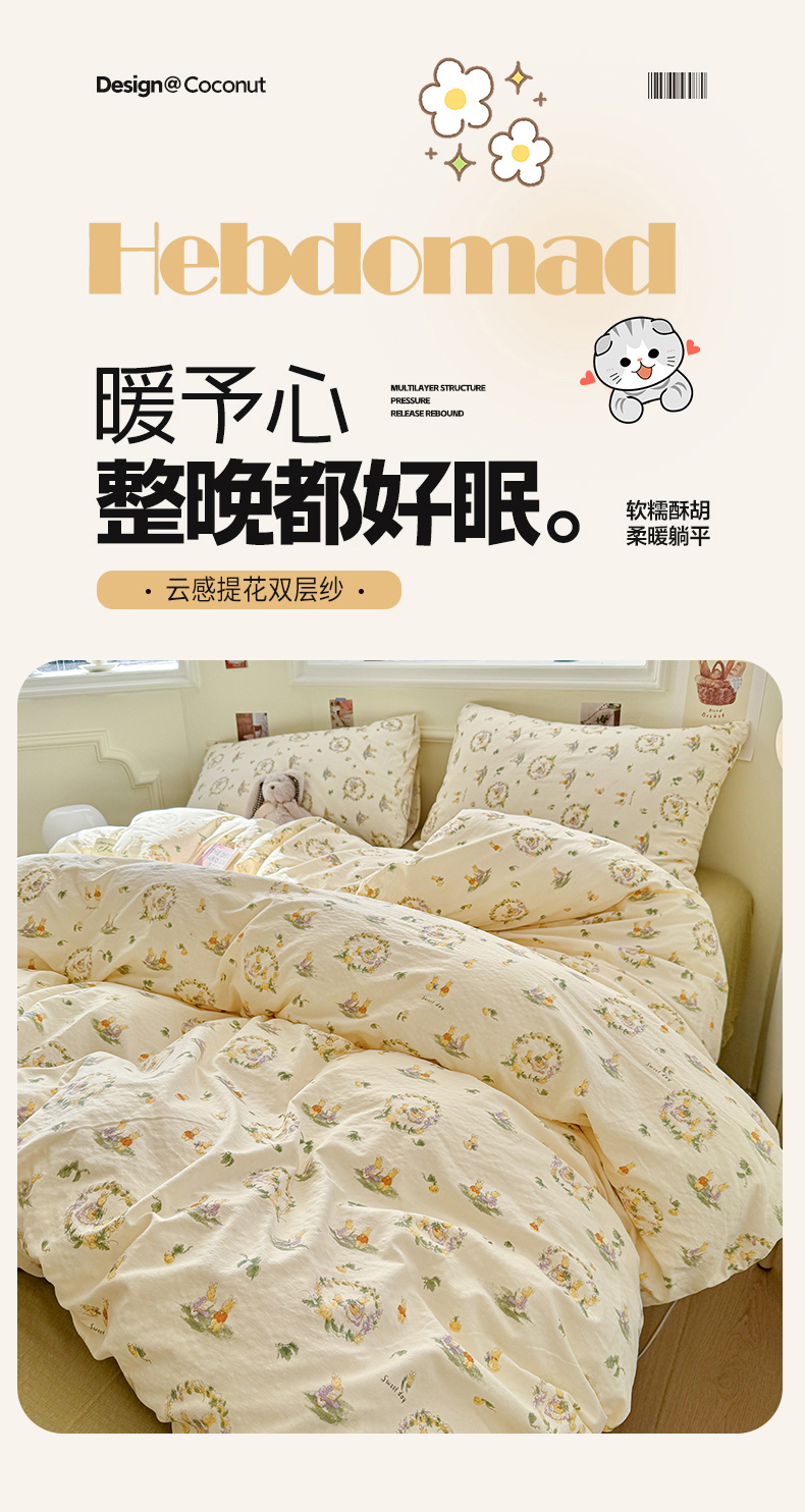 当前位置: 91家纺网 > 商品网购 > 床品套件 > 四件套 > 双层纱四件套 > 罗亿家纺 2025新款云感提花双层纱裸睡四件套 兔子的欢喜