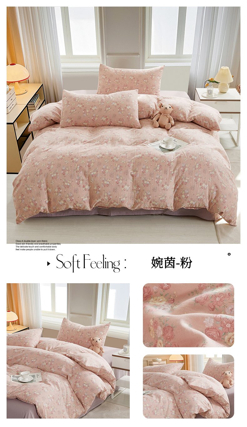 商品名称:棉小二 2025新款双层纱印花系列四件套 婉茵-粉