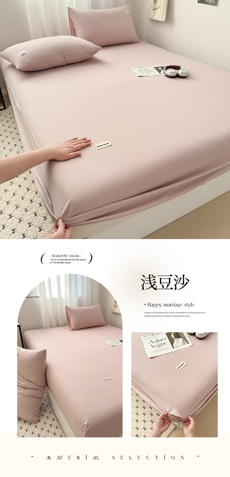 (总)罗亿家纺 2025新款高克重牛奶绒烂花雕花纯色床笠(230g),安娜-浅粉,安娜-高级灰,安娜-米白,安娜-浅咖,安娜-浅蓝,安娜-深咖,组合图