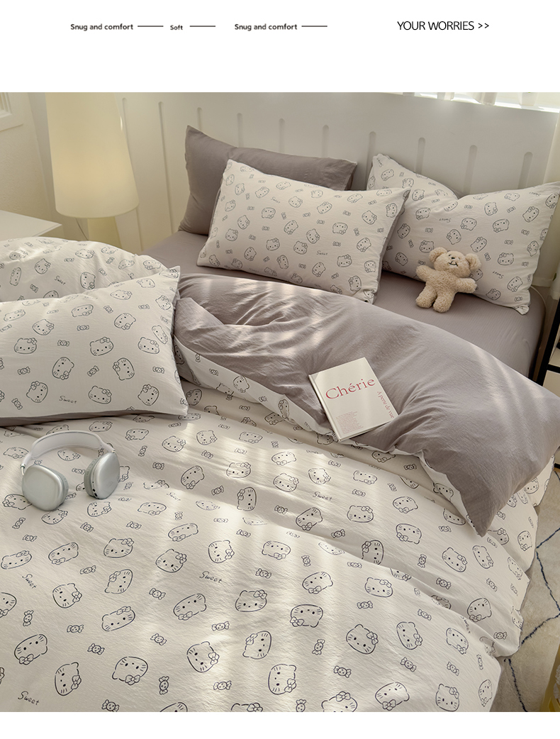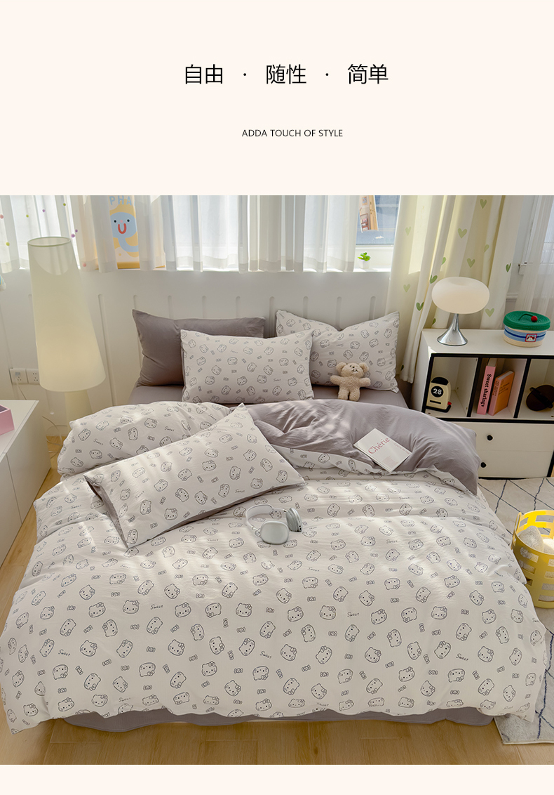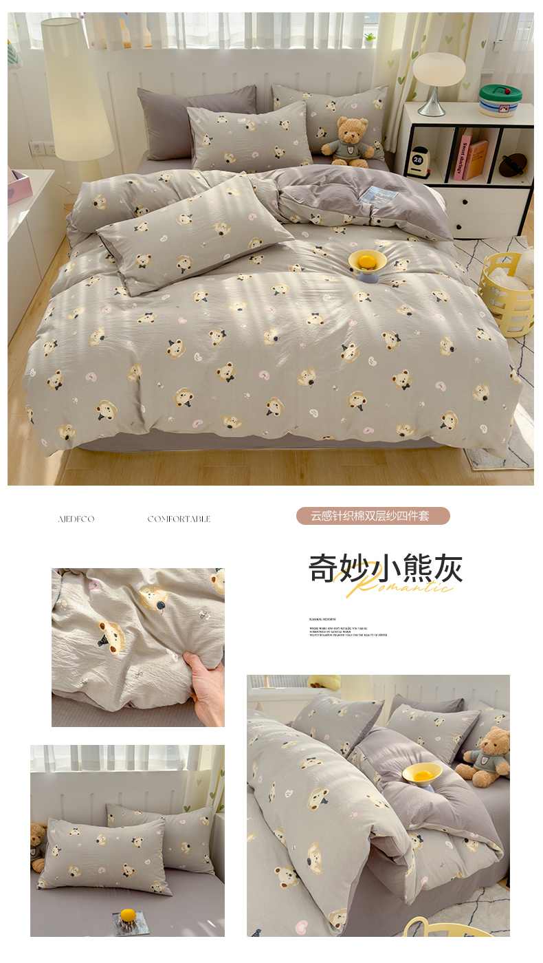 (总)宏源家纺 2025新款芦荟棉印花亲肤四件套,花园熊,快乐玩伴,萌萌猫粉,萌萌猫灰,甜品派对-蓝,甜品派对-玉,小猫日记,小新灰,小新蓝,熊仔仔