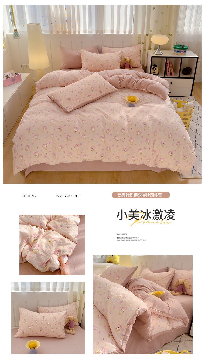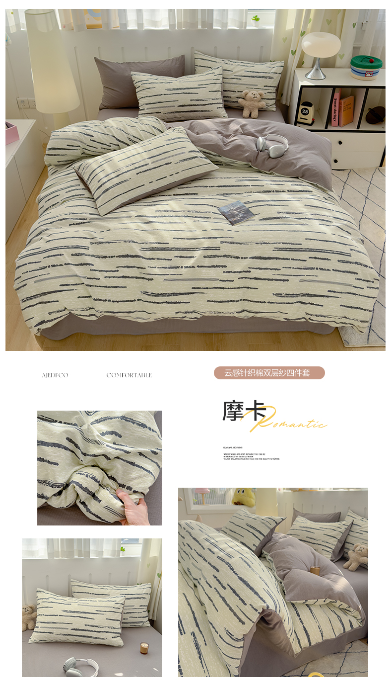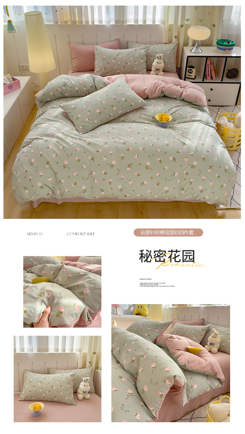 商品名称:(总)宏源家纺 2025新款A类超柔有氧云感双层纱四件套