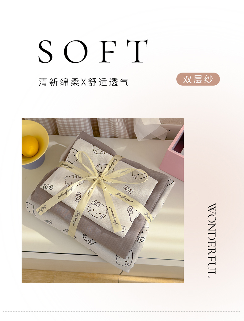(总)宏源家纺 2025新款A类超柔有氧云感双层纱单被套,爱心咖,爱意浓,赫拉,花枝兔,猫咪恋人,秘密花园,摩卡,奇妙小熊灰,奇妙小熊米,小猫时光蓝,小美冰激凌,玉花园
