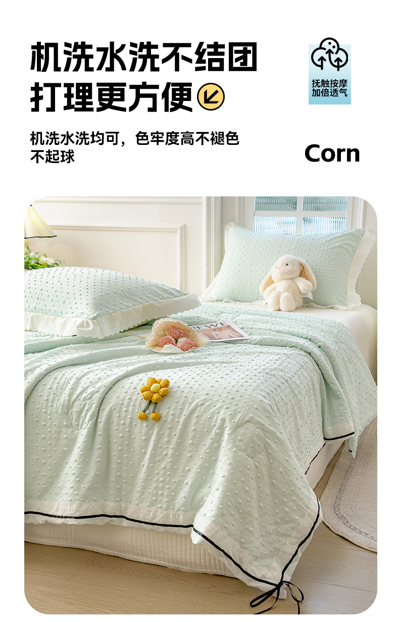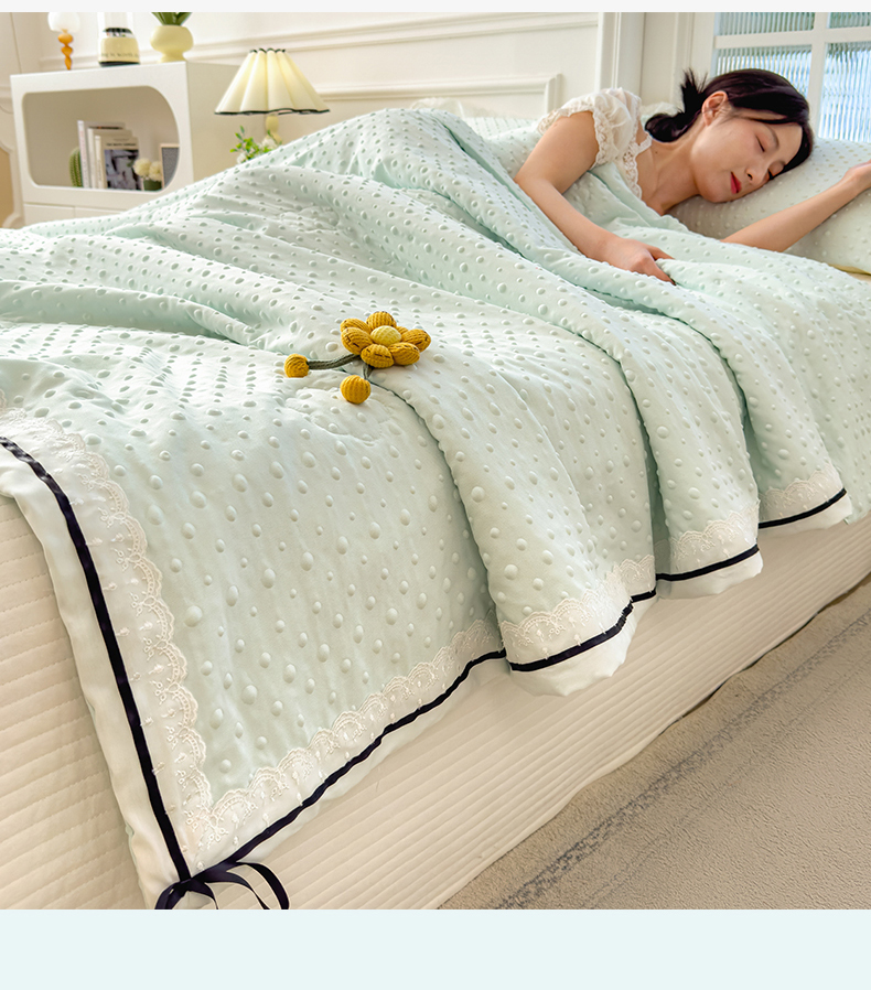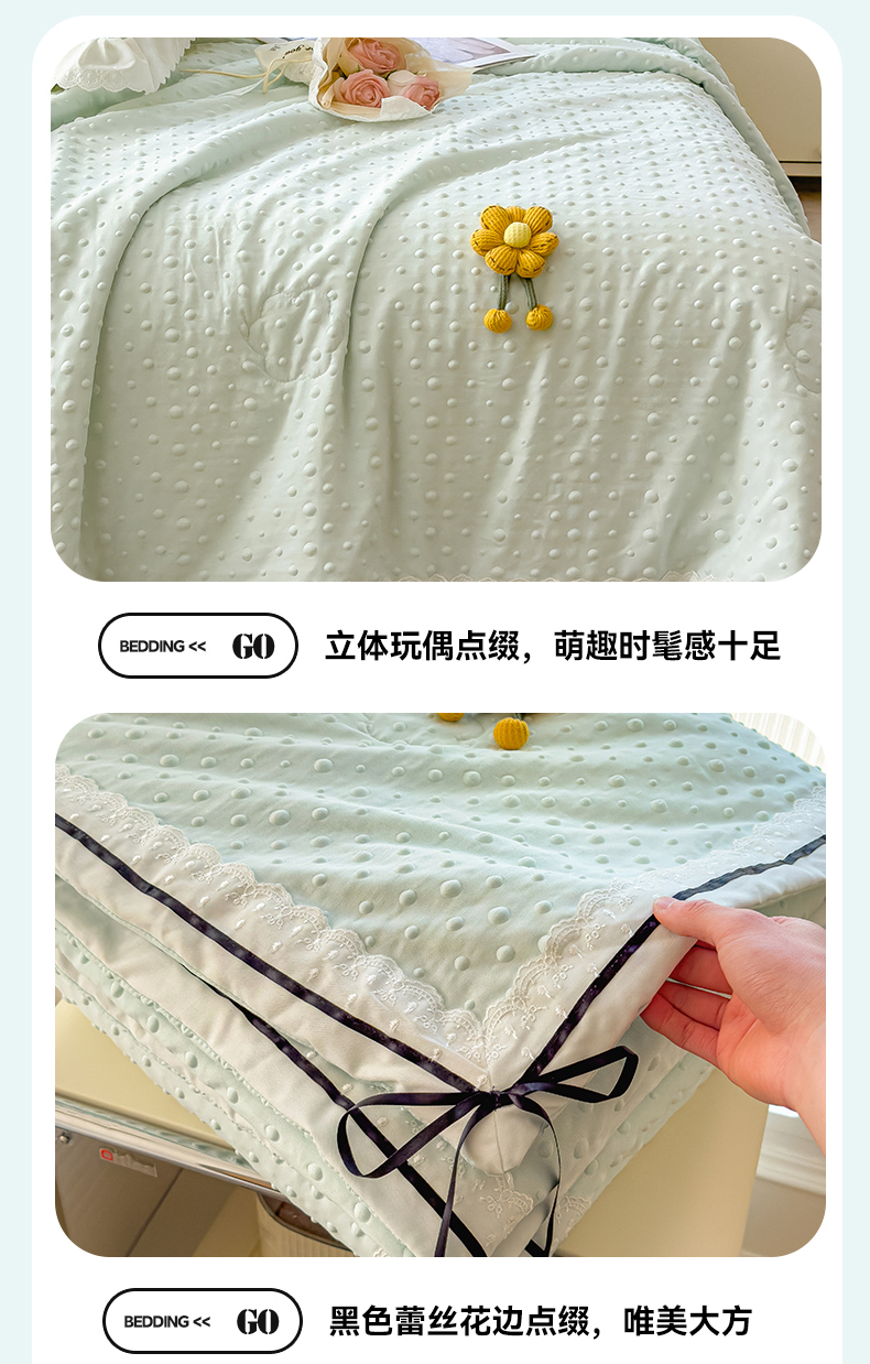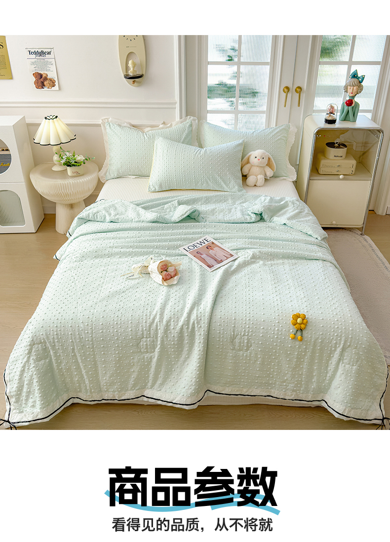 商品名称:兄弟坊 2025新款韩版针织泡泡纱花边夏被夏凉被 小花-果绿