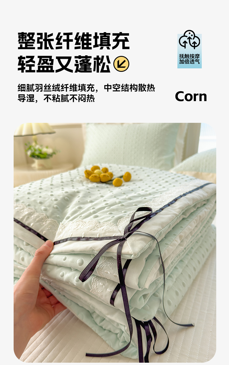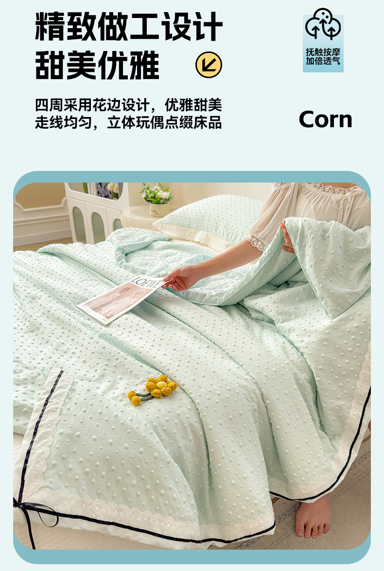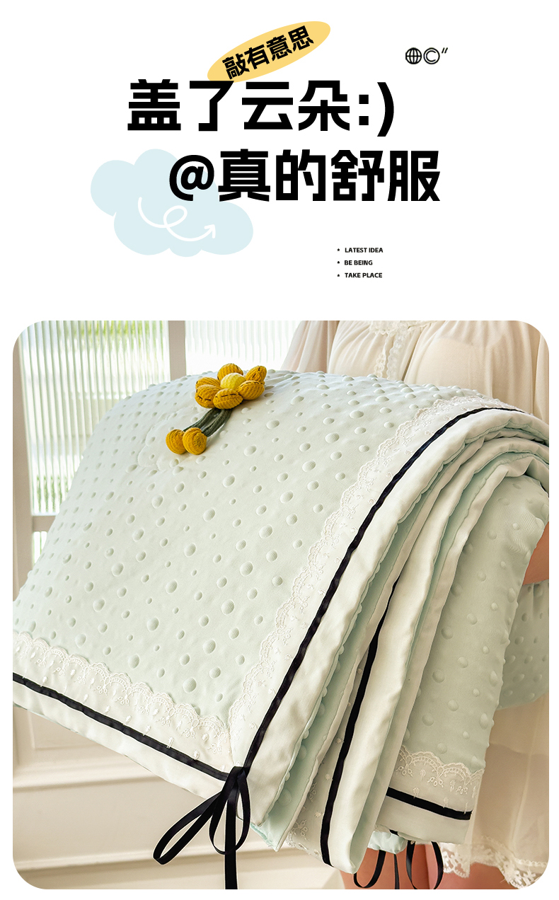 商品名称:兄弟坊 2025新款韩版针织泡泡纱花边夏被夏凉被 小花-果绿