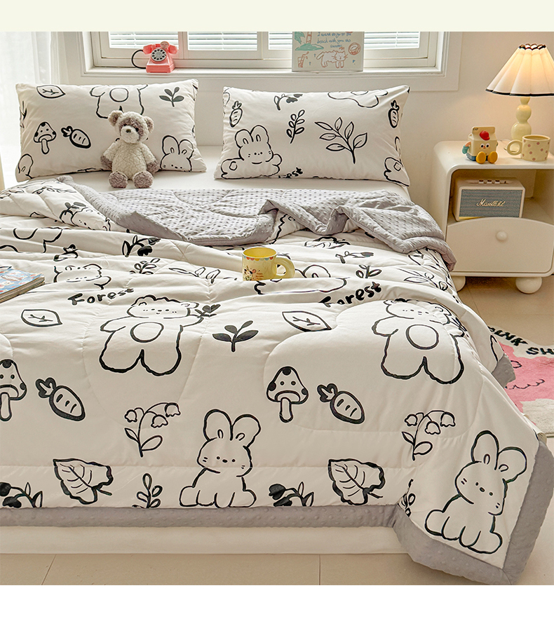 悦织语2025新款A类水洗棉双层纱豆豆被大豆夏凉被 线条兔