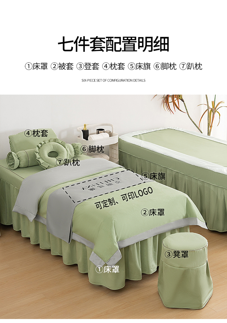 (总)梦来美家纺 2025新款彩棉麻美 容床罩(控价175元),典雅粉配绿,典雅灰,典雅卡其,典雅绿,典雅米白,典雅米白配粉,典雅米白配灰,典雅米白配绿,典雅浅咖,樱花粉