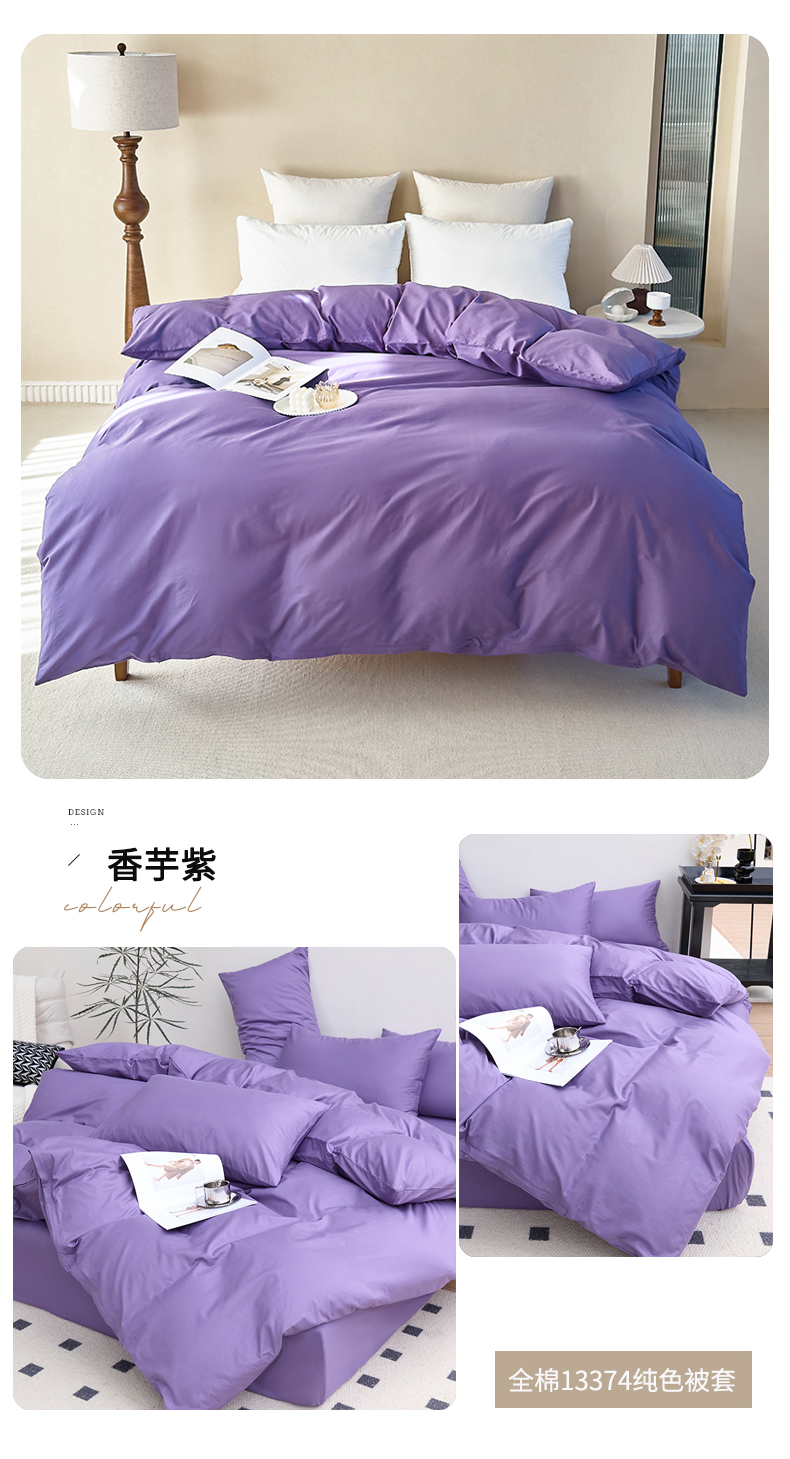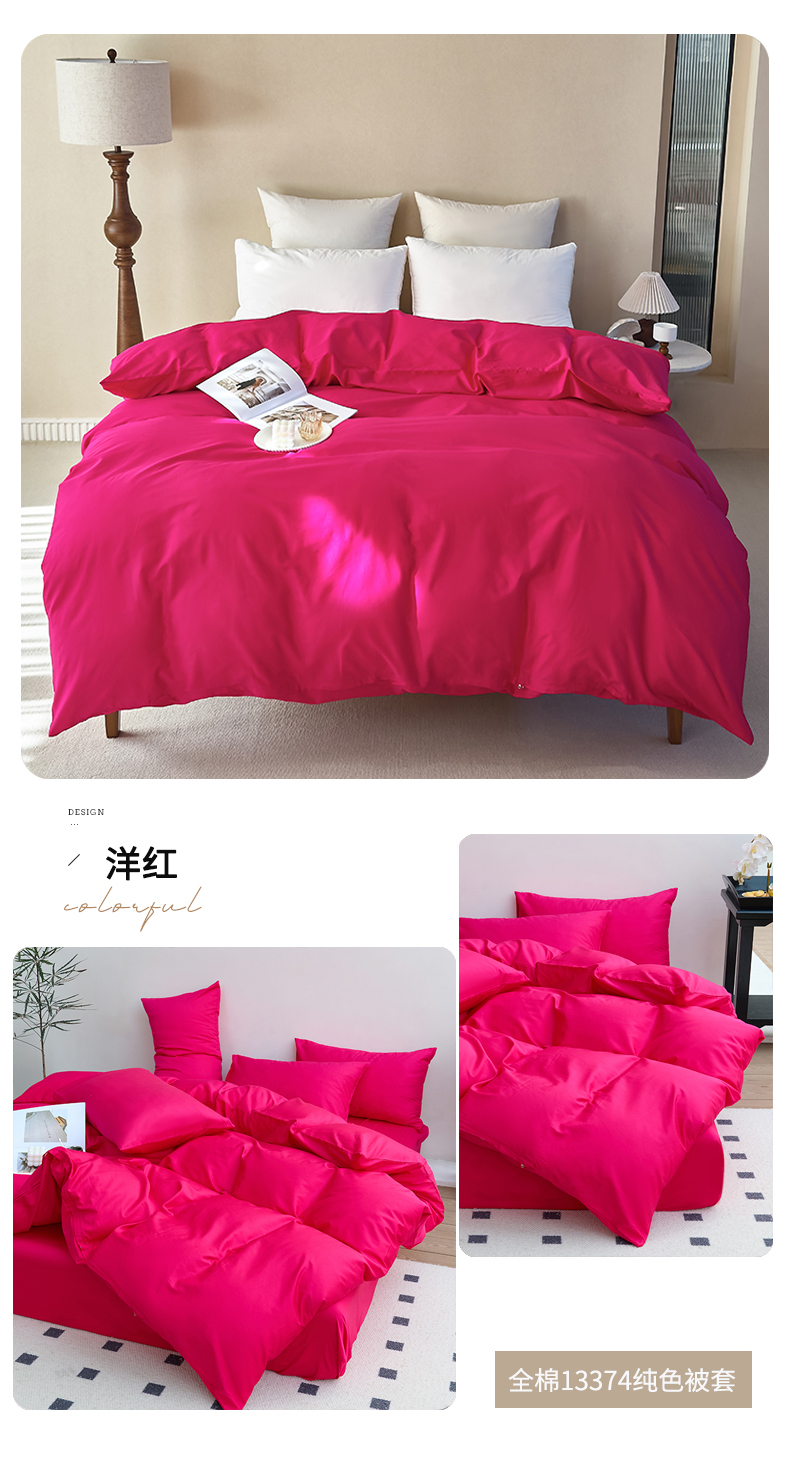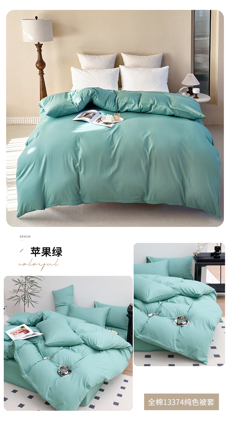 (总)期遇2025新款13374纯色全棉被套,粉玉,海棠红,幻影灰,橘黄,卡其,嫩绿,苹果绿,青蓝,香芋紫,洋红