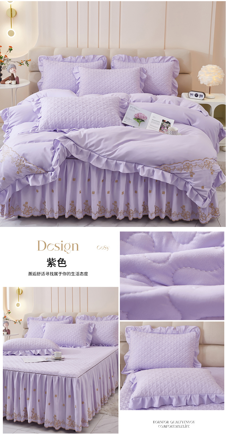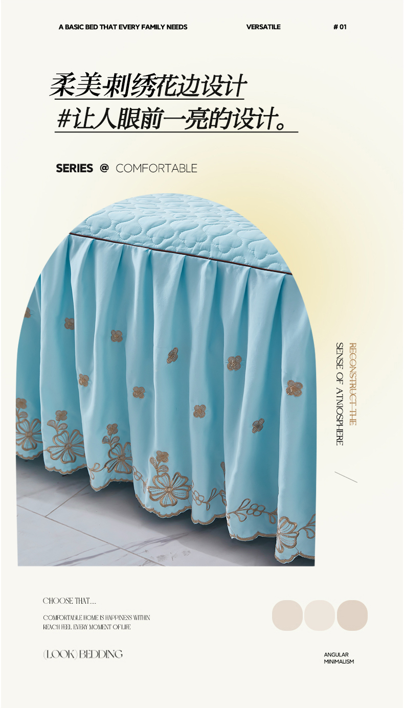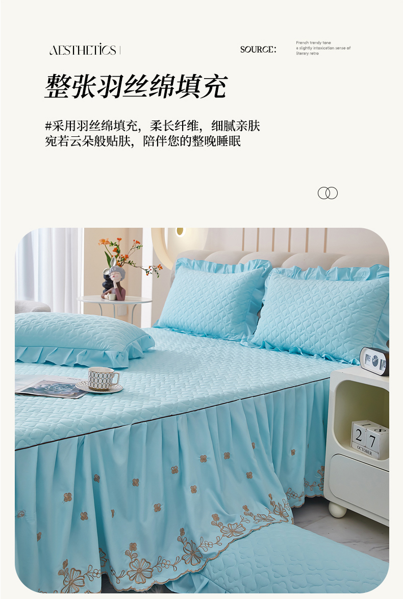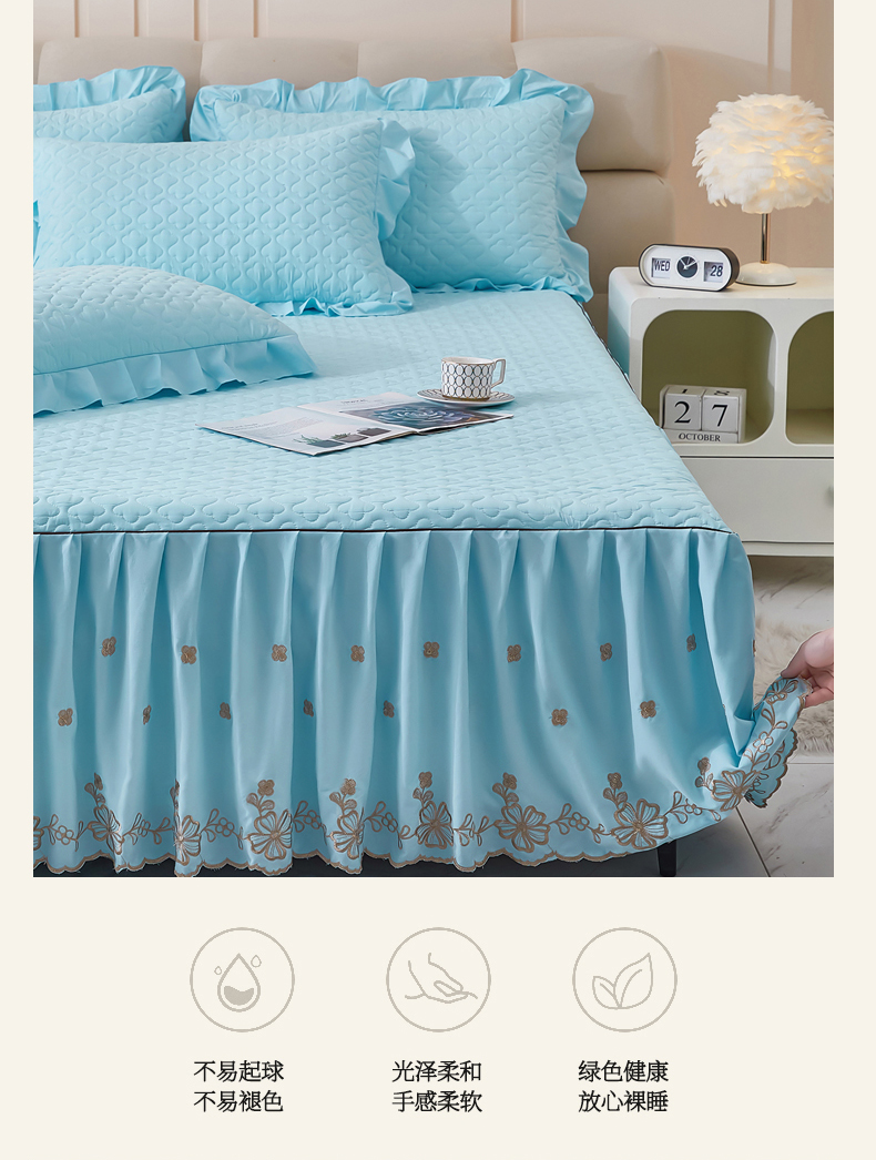 • 91家纺网 家纺一手货源 找家纺 家之硕家纺 2025新款云朵棉刺绣床裙四件套单床裙 浅蓝