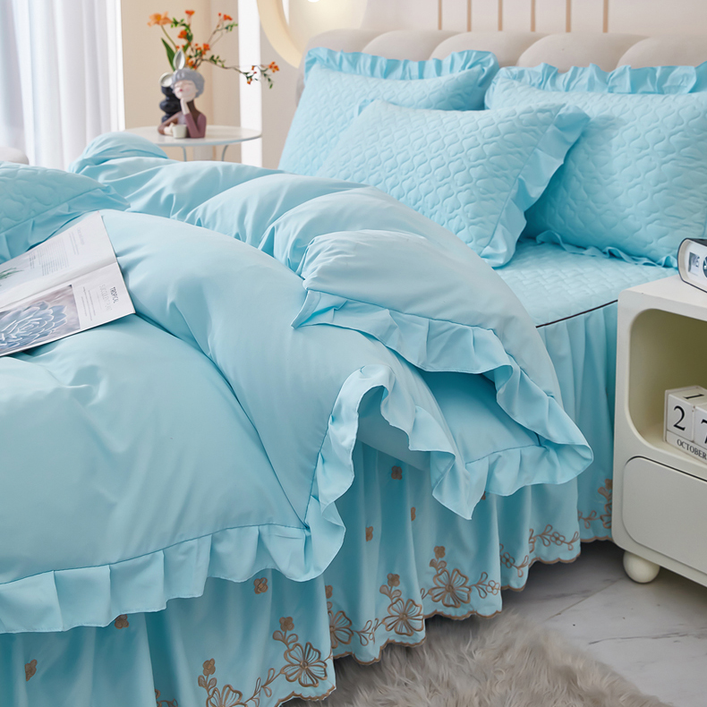 家之硕家纺 2025新款云朵棉刺绣床裙四件套单床裙 浅蓝