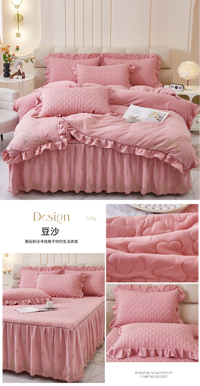 • 91家纺网 家纺一手货源 找家纺 (总)家之硕家纺 2026新款精仿棉夹棉床裙四件套,彩韵,春芽,多丽粉,花恋,漫漫花开,倾城繁花,甜蜜花园,遇见浪漫